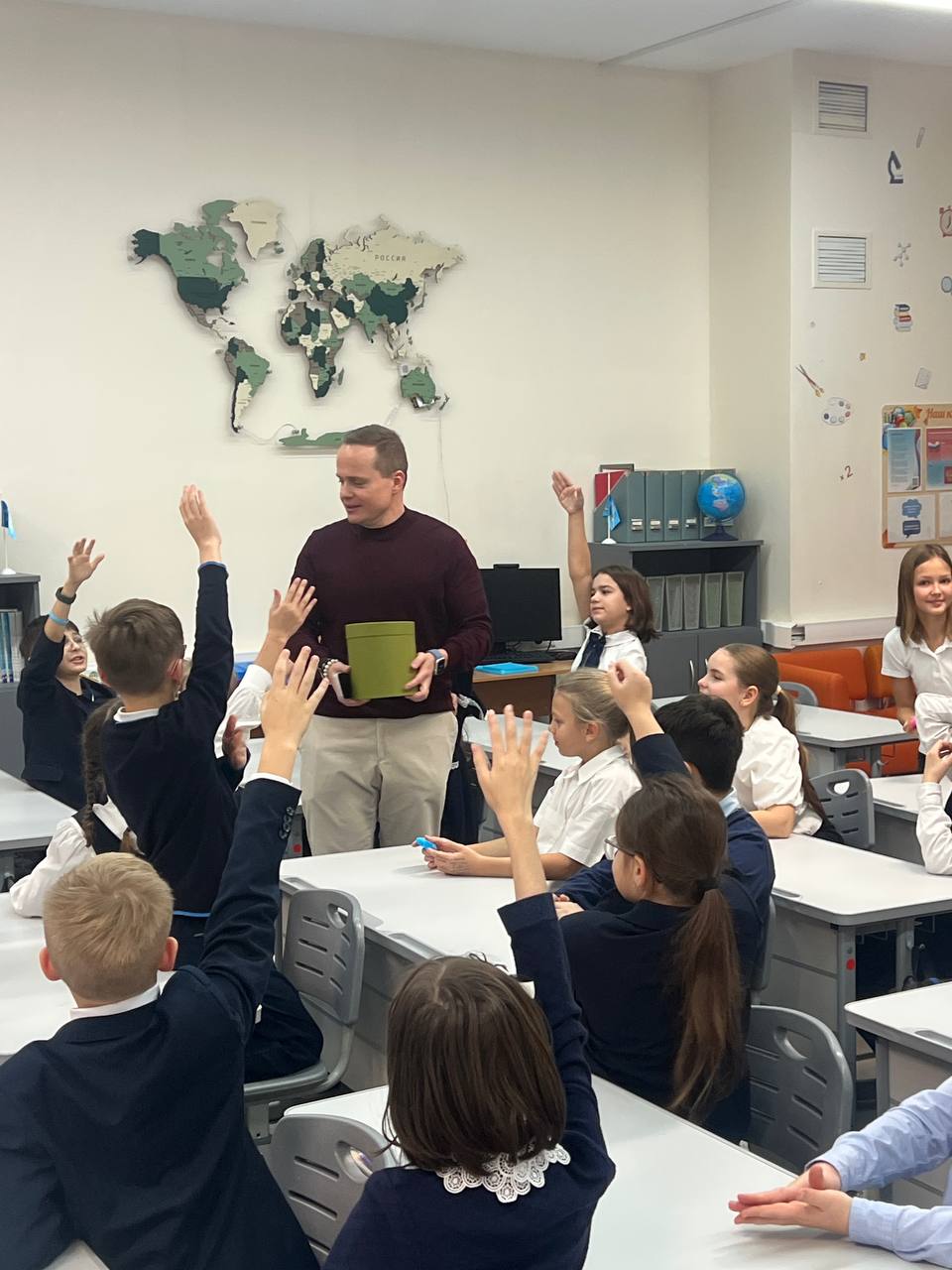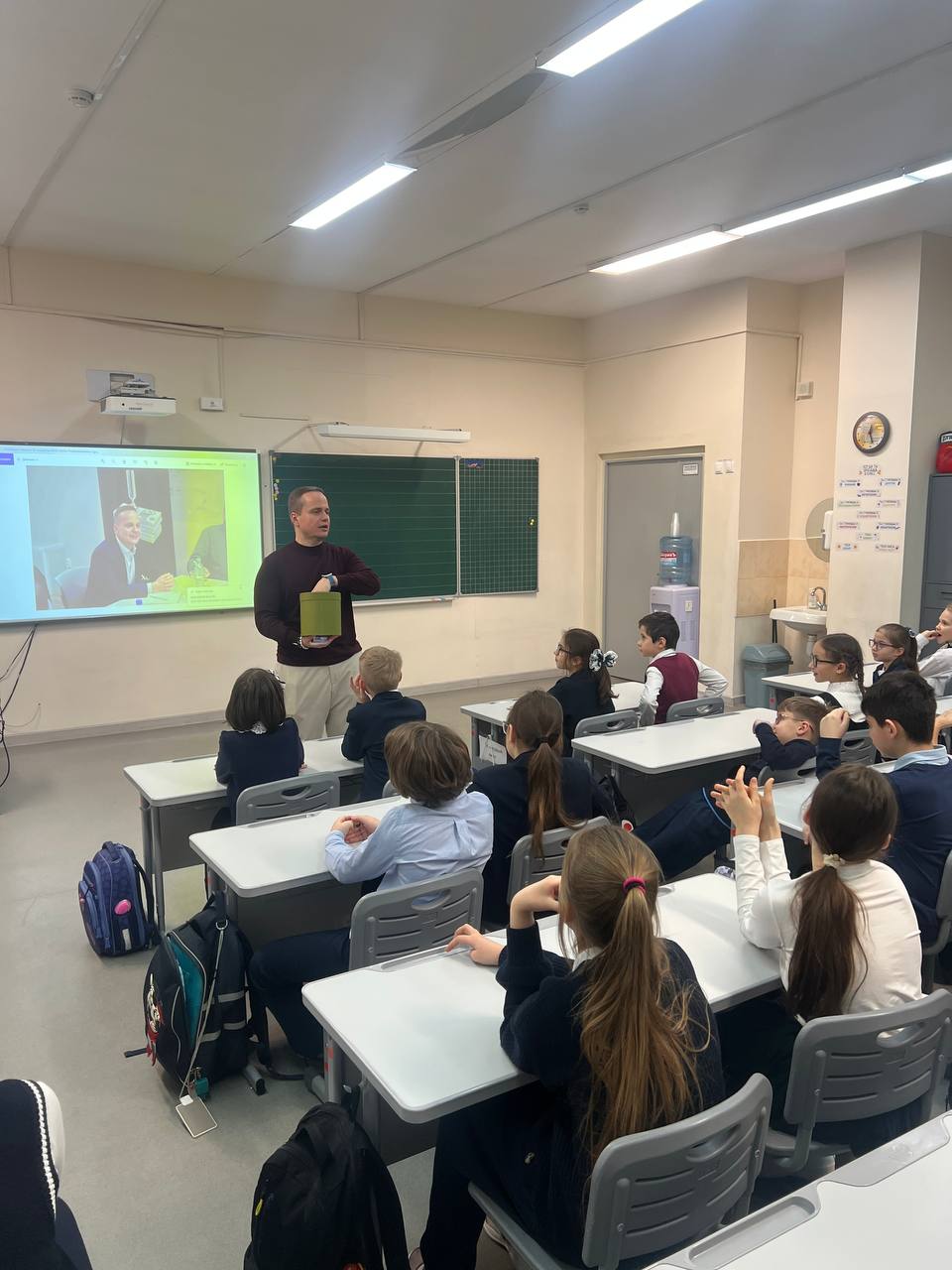 В рамках проекта «Родители Детям» ученики 4 «А» класса встретились с интересным и успешным человеком — членом Управляющего совета школы 1409, бизнесменом Михаилом Ворониным.