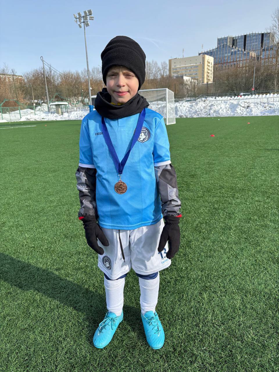 В праздничные выходные прошли стыковые матчи Зимнего Первенства Москвы среди команд 2016 года рождения. Ученик 3Е класса, полузащитник Тимофей Кудинов, выступал в составе футбольной академии Родина-Юнитра.