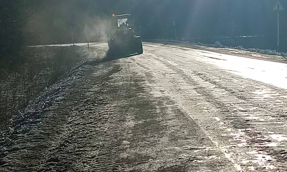 Сейчас дорожники ведут противогололедную обработку скользких участков: