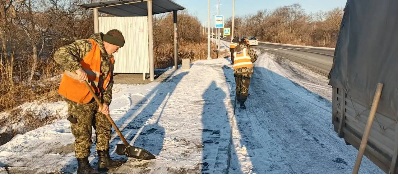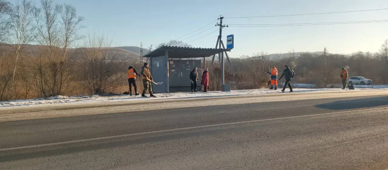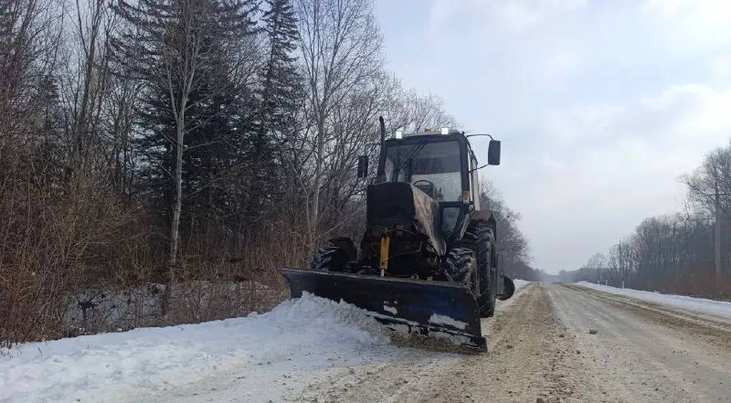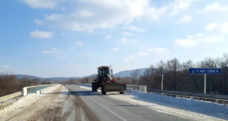✅Очистку от снега и противогололедную обработку проезжей части выполнили специалисты филиала «Шкотовский» с 24 по 53 километры дороги Штыково – Ивановка – Реттиховка