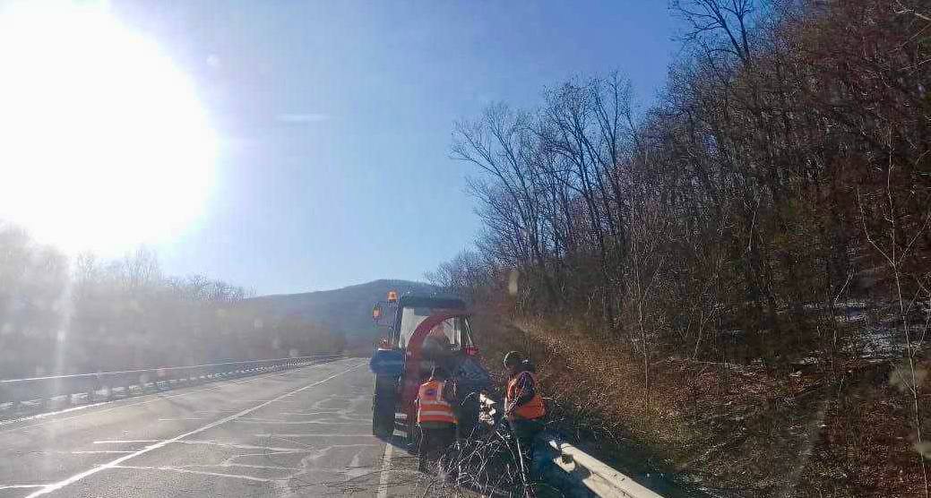 🪵Дорожники филиала «Хасанский» очищали полосу отвода от древесно-кустарниковой растительности с последующим дроблением на автодороге Раздольное – Хасан с 74 по 75 километры