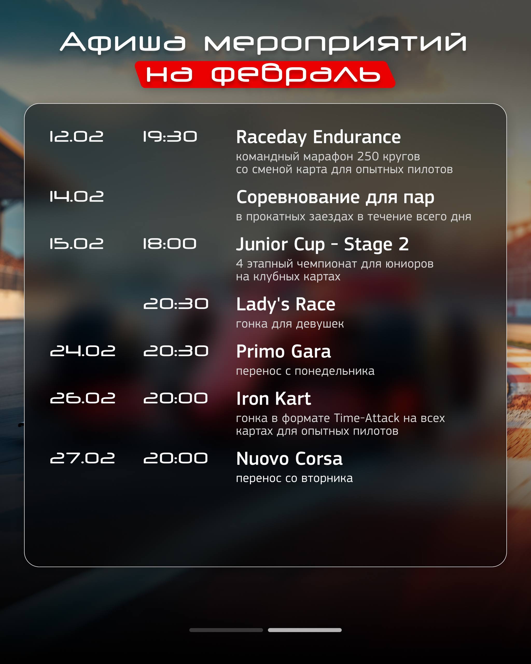 Time attack — каждый пилот принимает участие в 3-х заездах на разных клубных картах, распределённых по жеребьевке, с целью показать лучшее время⏱️