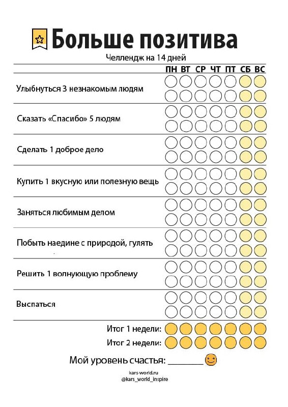 Заполненное «колесо» помогает увидеть, изменения в какой области могут положительно повлиять на всю вашу жизнь в целом. Подумайте, какая это сфера конкретно в вашем случае и какие шаги вы можете предпринять для её развития уже в ближайшие 72 часа.