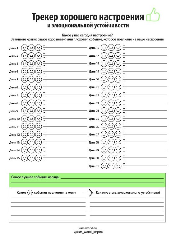 Данный трекер или мини — дневник позволит вам узнать больше о том, что же влияет на ваше настроение.