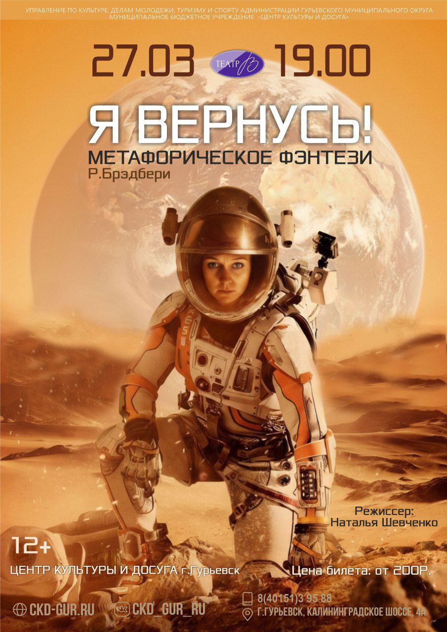 27 марта театр "В" приглашает вас в Центр культуры и досуга города Гурьевск на премьеру спектакля "Я вернусь"!