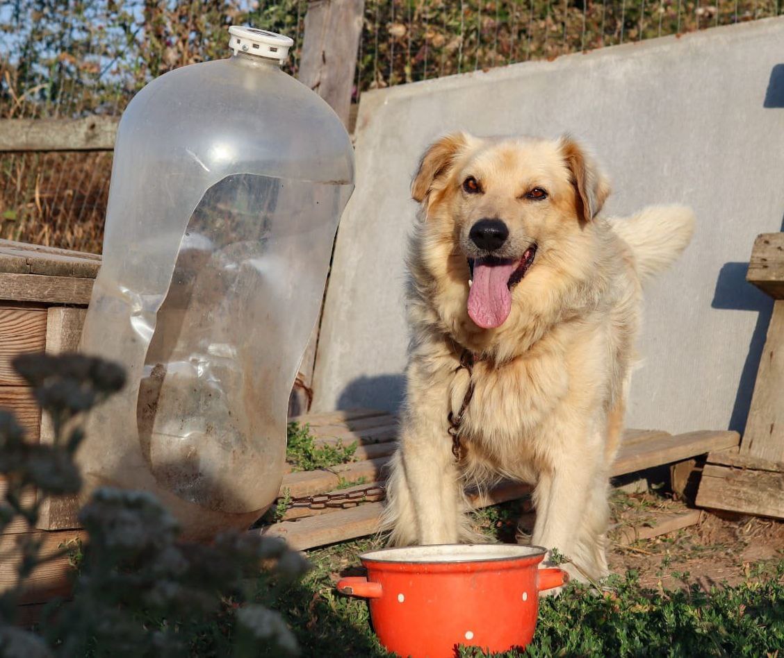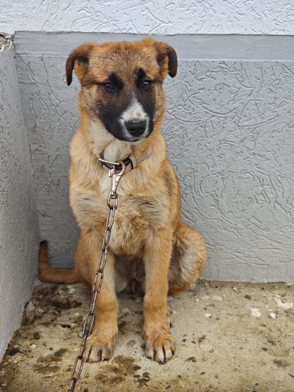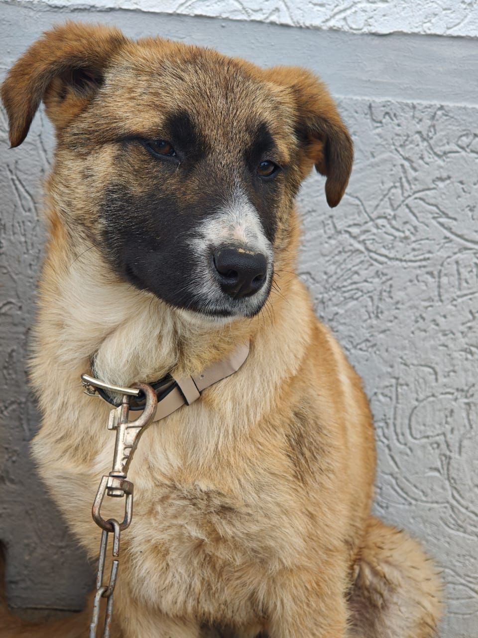 Пристраивается собака: будет высокая, явно умная, потому что уже сейчас охраняет двор, ловит мышей, не лает попусту. Ласковая, очень хочет дружить, общаться и быть нужной