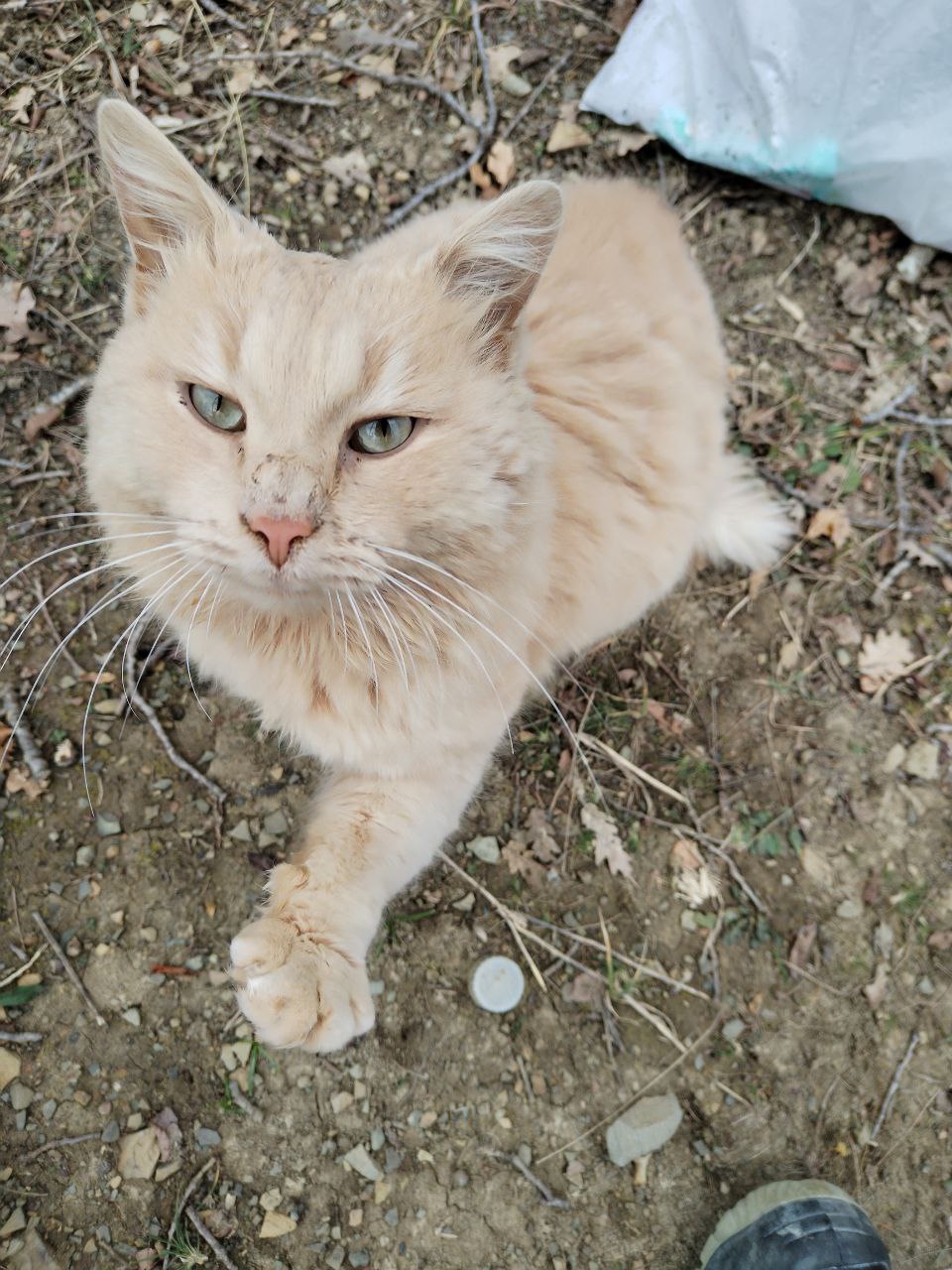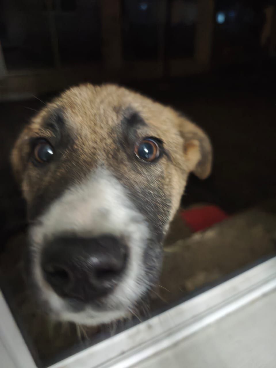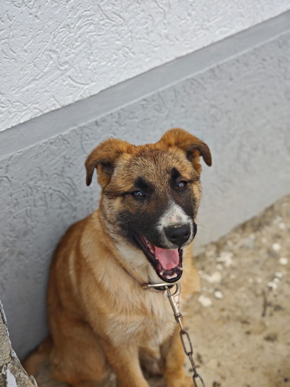 Пристраивается собака: будет высокая, явно умная, потому что уже сейчас охраняет двор, ловит мышей, не лает попусту. Ласковая, очень хочет дружить, общаться и быть нужной