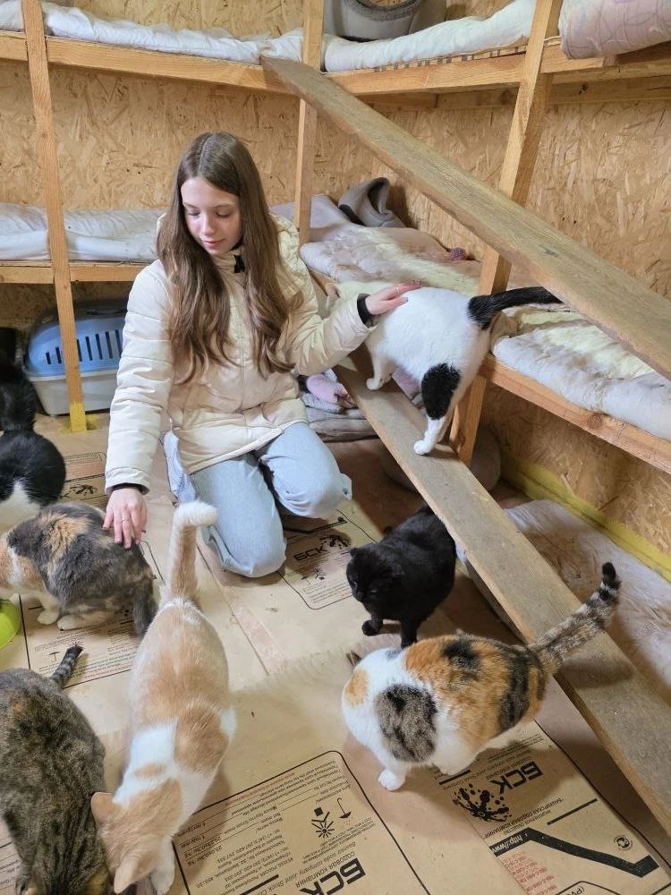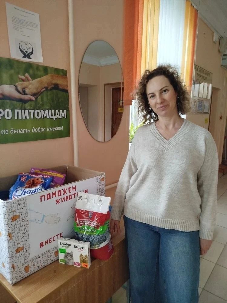 Ученица школы №6 Диана Мавропуо стала инициатором такой акции в своем учебном заведении. Ее поддержали и руководство школы, и педагоги, и ребята с родителями. Огромную коробку кормов для кошек и собак Диана с мамой привези для наших подопечных. Школьница покормила некоторых животных и перегладила всех кошек.