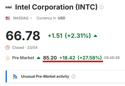 Сьогодні, наприклад, звітує Intel 💻 і це цікаво не менше, ніж будь-які політичні події. Компанія фактично повернулась до рівнів піку дотком-бульбашки. Тобто якщо хтось купував акції Intel у 2000 році - Вітаю! Ви тільки зараз вийшов у нуль 😅