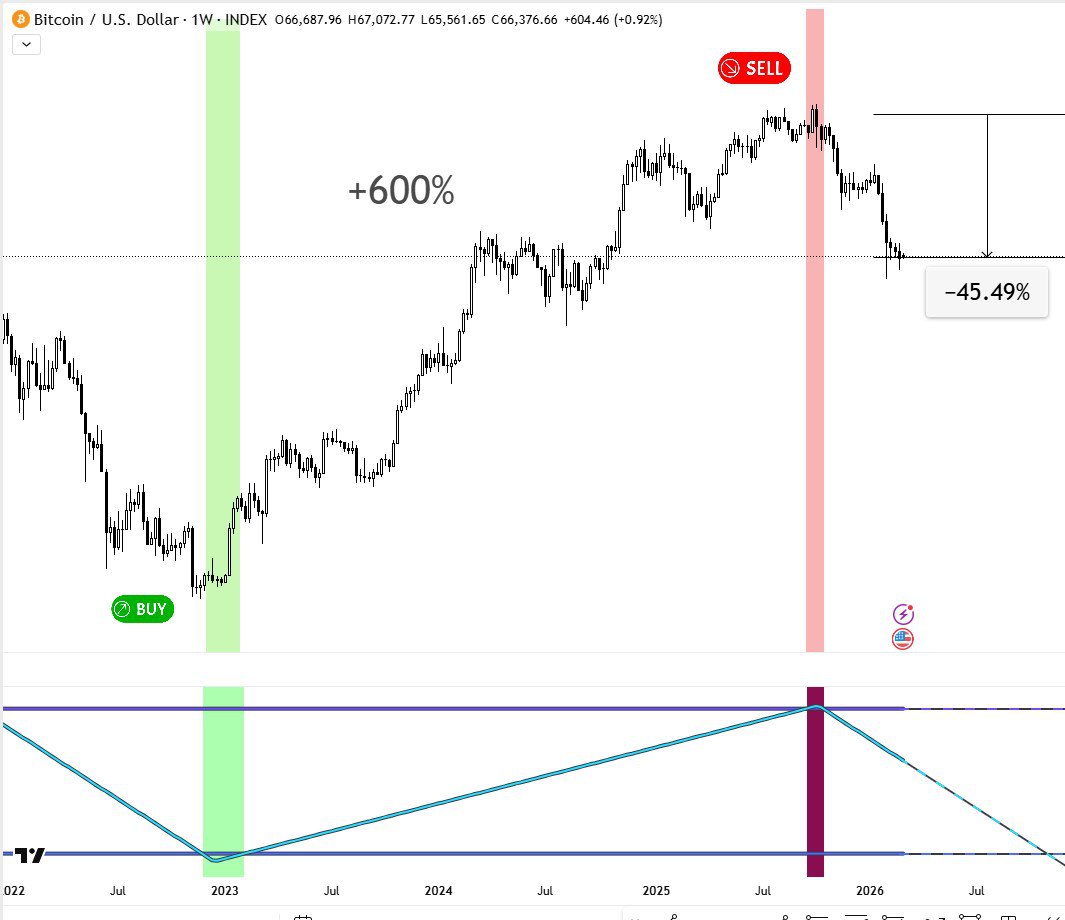 Точно так же мы определили, что уровень 120к — это пик рынка BTC, за которым последует масштабная коррекция и медвежий рынок.