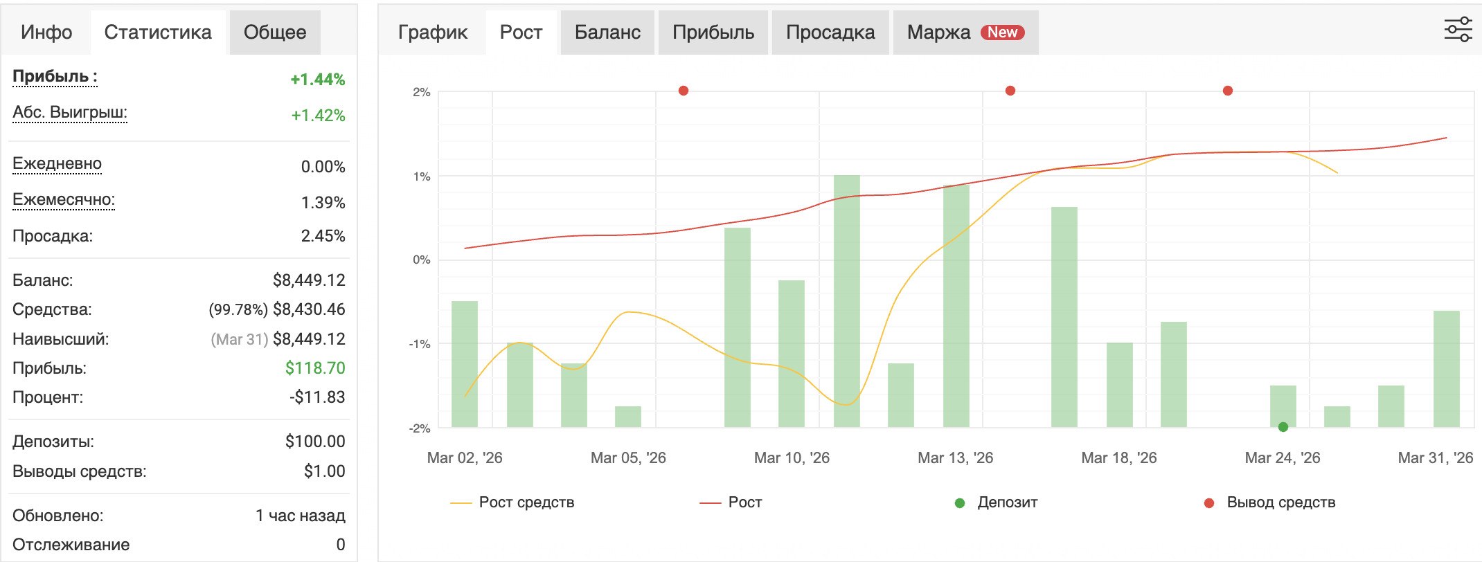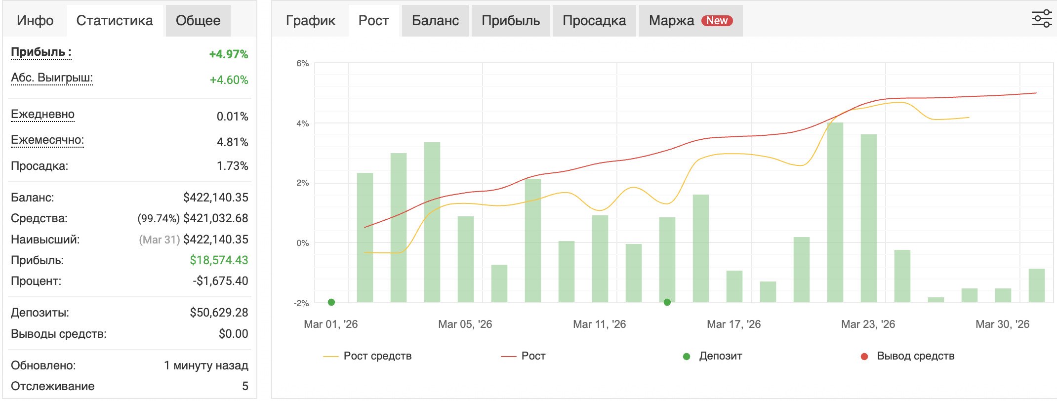 Результат за март: +4.28% к депозиту