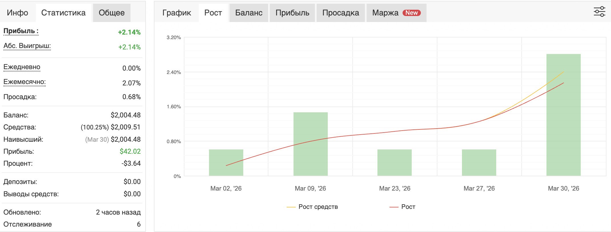 Максимальная просадка <2%