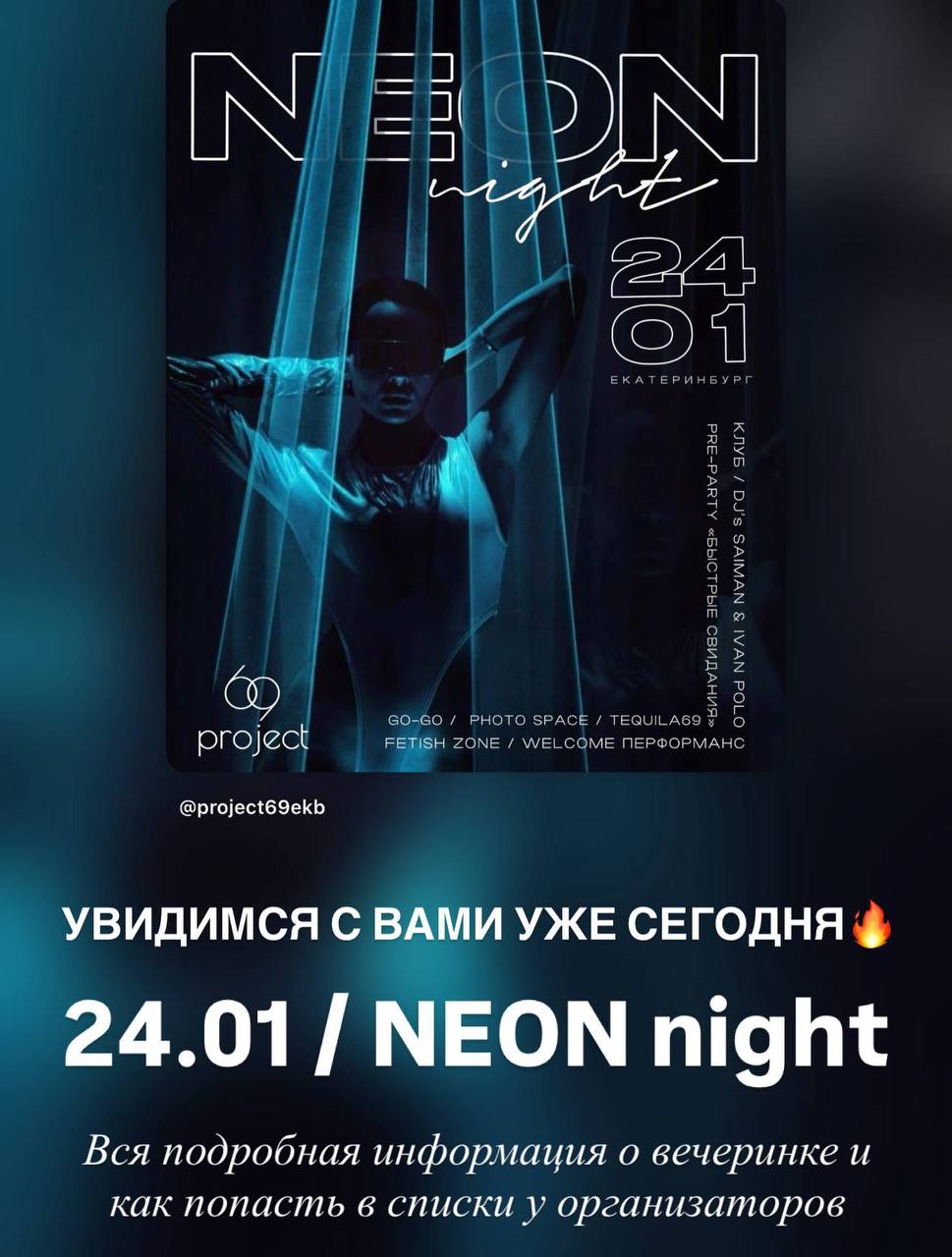 ⚡Также для гостей приветствуются аксессуары и образы в неоновых оттенках или преобладание белого цвета в одежде.