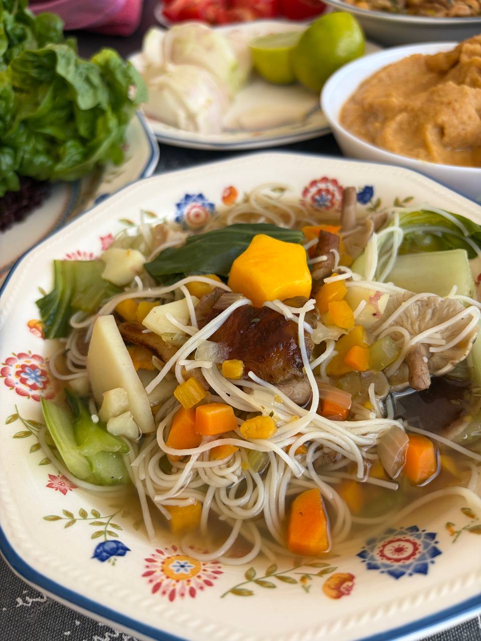 Он очень вкусный, ароматный и очень полезный, несмотря на довольно большое количество рисовой лапши (продукт-”наполнитель”). Все остальные его ингредиенты - просто суперзвезды с мощным целебным потенциалом!