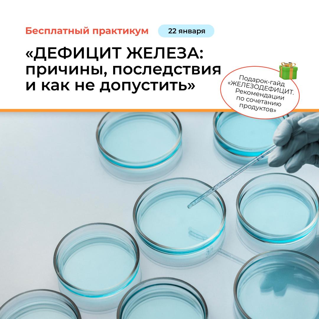 🗓 22 января пройдет бесплатный практикум от врача-эндокринолога Екатерины Оксенюк: «Дефицит железа: причины, последствия и как не допустить»