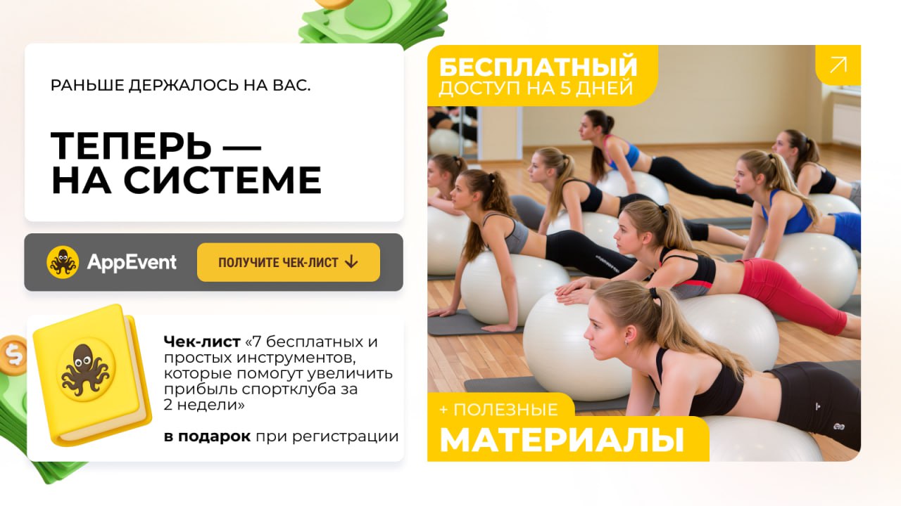 🔥 Только для участников канала Stretch | Растяжка | Шпагат — Чек-лист: «7 бесплатных и простых инструментов , которые помогут увеличить прибыль спортклуба за 2 недели»