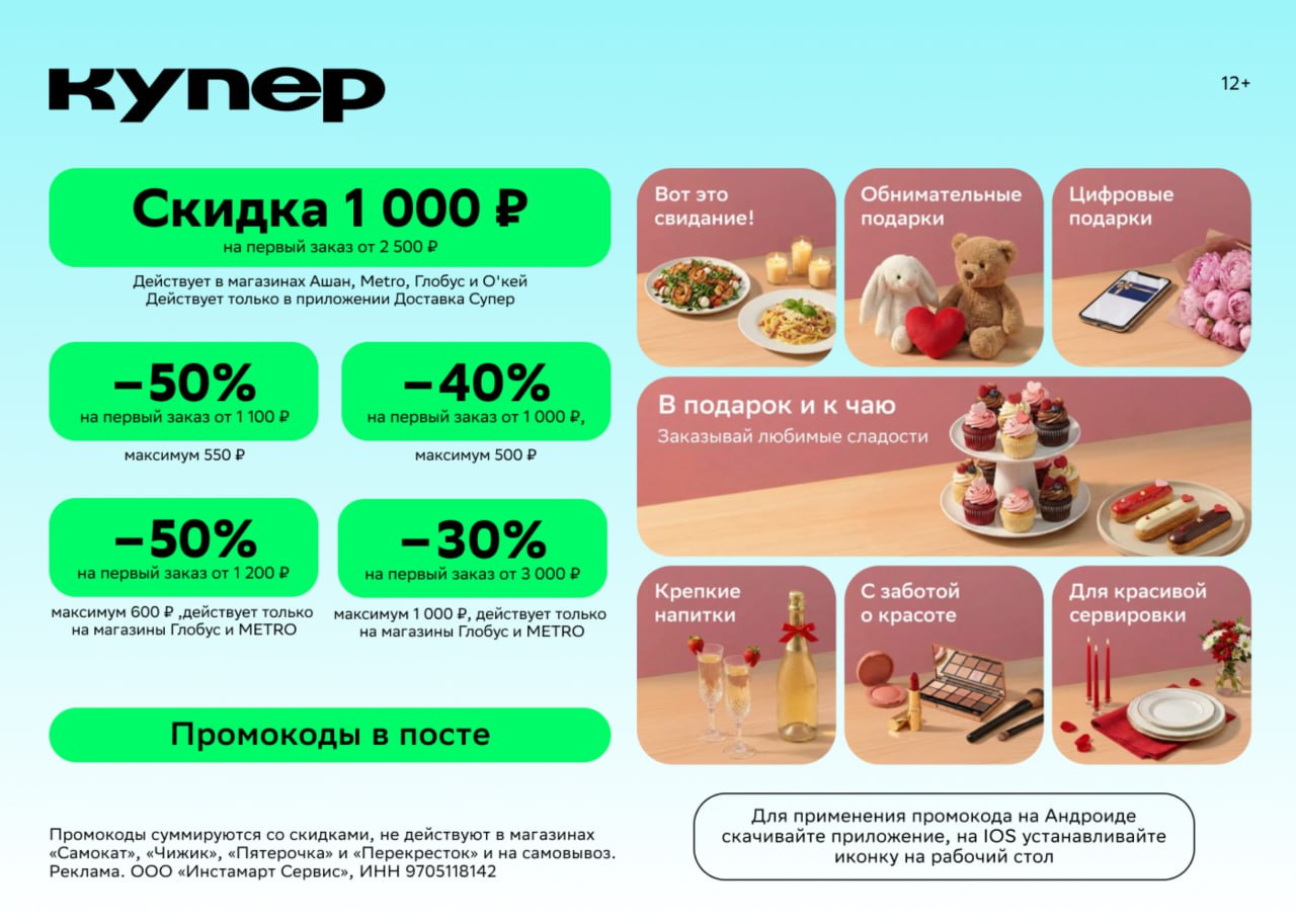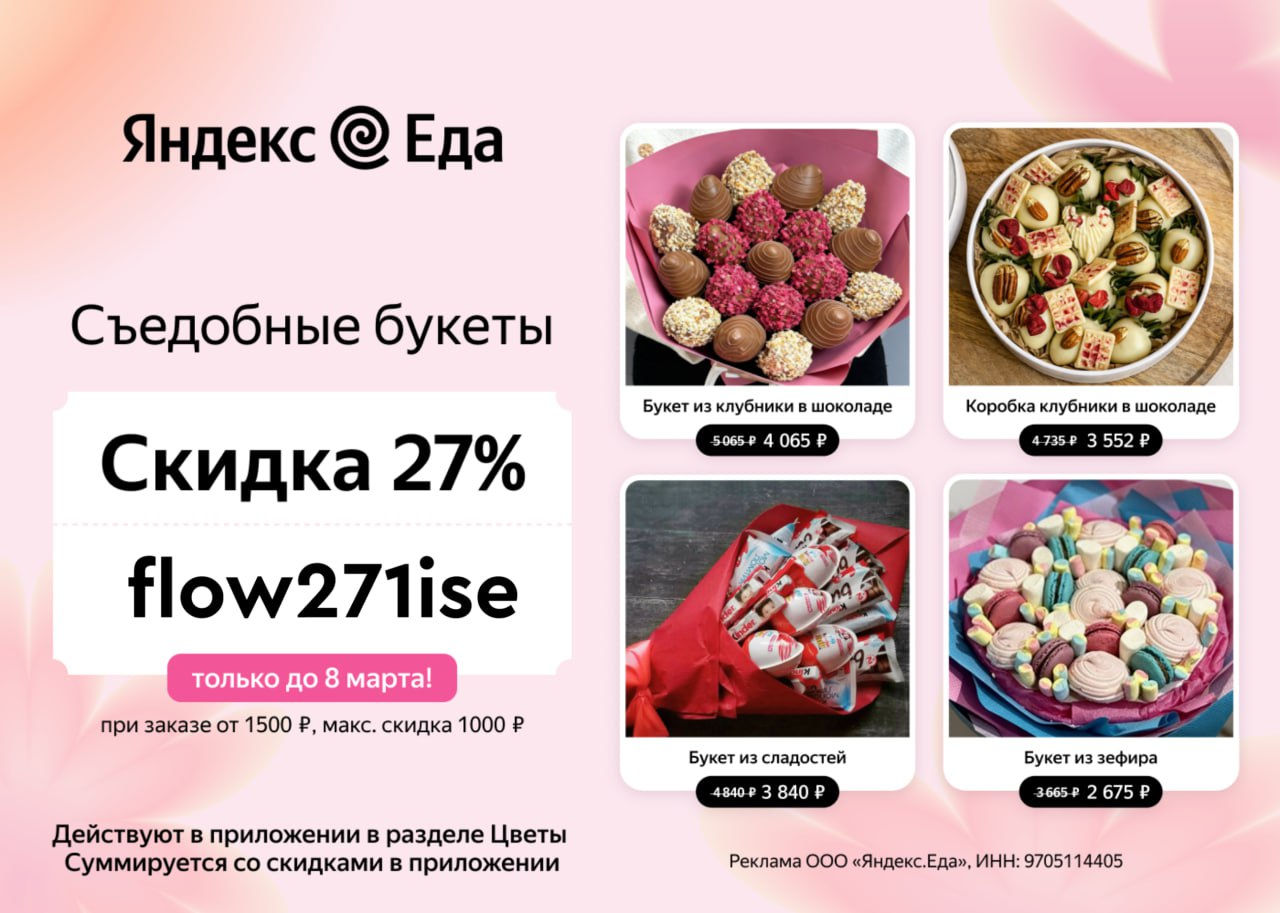 Промокод работает только по ссылке👈 Скидка на заказ действует только при оплате с помощью банковской карты.