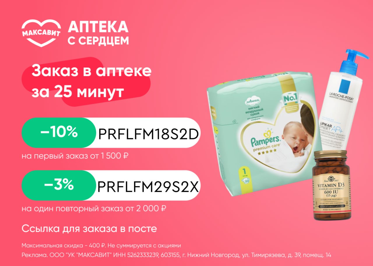 ❗️Промокоды работают на сайте и в приложении, не суммируются с другими акциями, максимальная скидка по протоколам - 400 ₽.