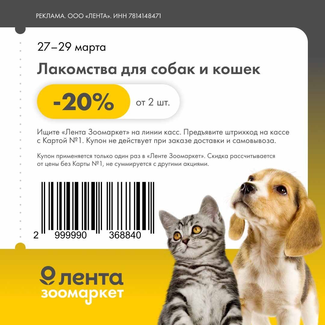 ❗️Скидка не действует на товары CESAR, FELIX, FRISKIES, CHAPPI, KITEKAT, NATURE'S TABLE, PURINA ONE, PEDIGREE, PERFECT FIT, SHEBA, WHISKAS, MAGNET AND STEEL, CATSAN, БАРСИК, 3ООНИК, ГУРМЭ