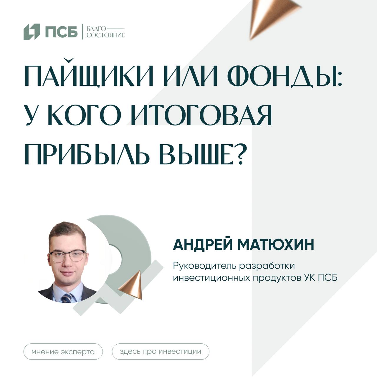 📊 Когда пайщикам ПИФов удается оказываться успешнее самих фондов? На актуальные вопросы о результативности инвестиций в ПИФы ответил руководитель разработки инвестиционных продуктов УК ПСБ Андрей Матюхин.