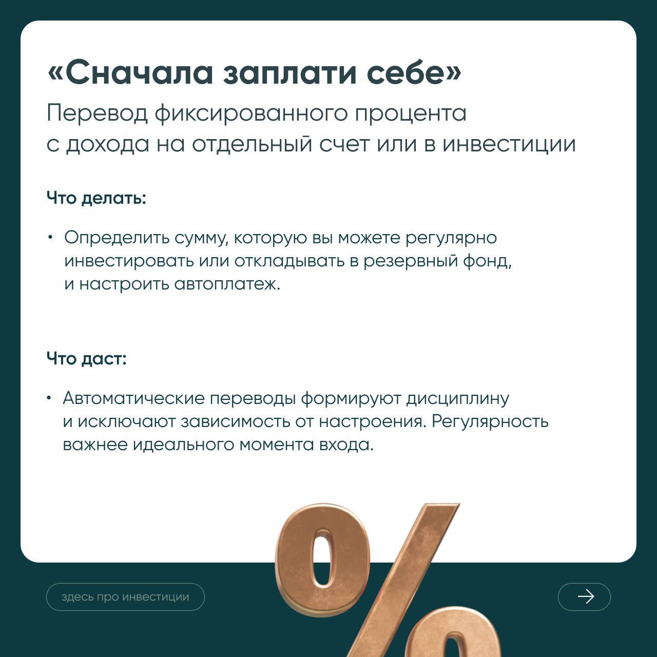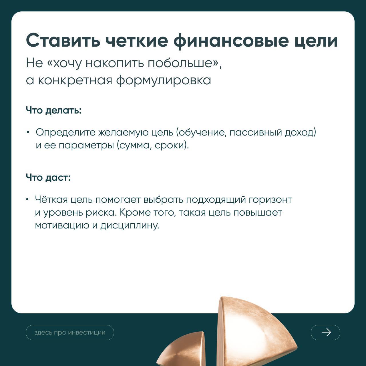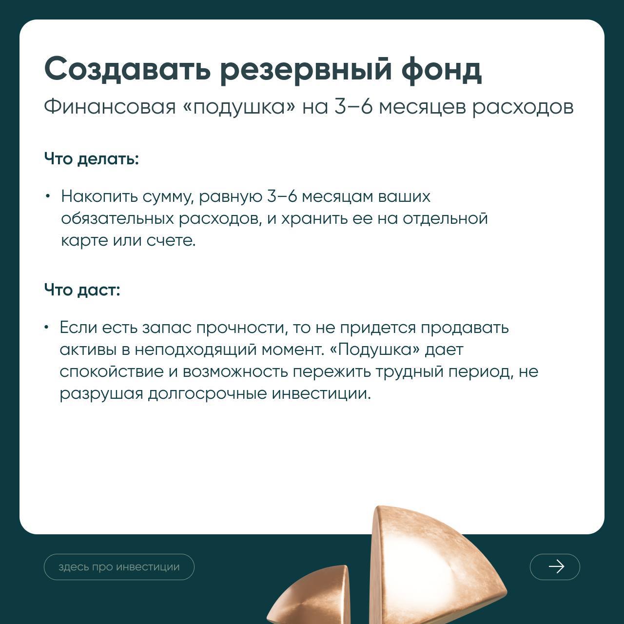 Она снижает тревожность и делает стратегию гибкой. Вы не гадаете, «что будет с рынком завтра», а знаете, что часть денег размещена в консервативных инструментах для ближайших планов, а остальные работают на перспективу.