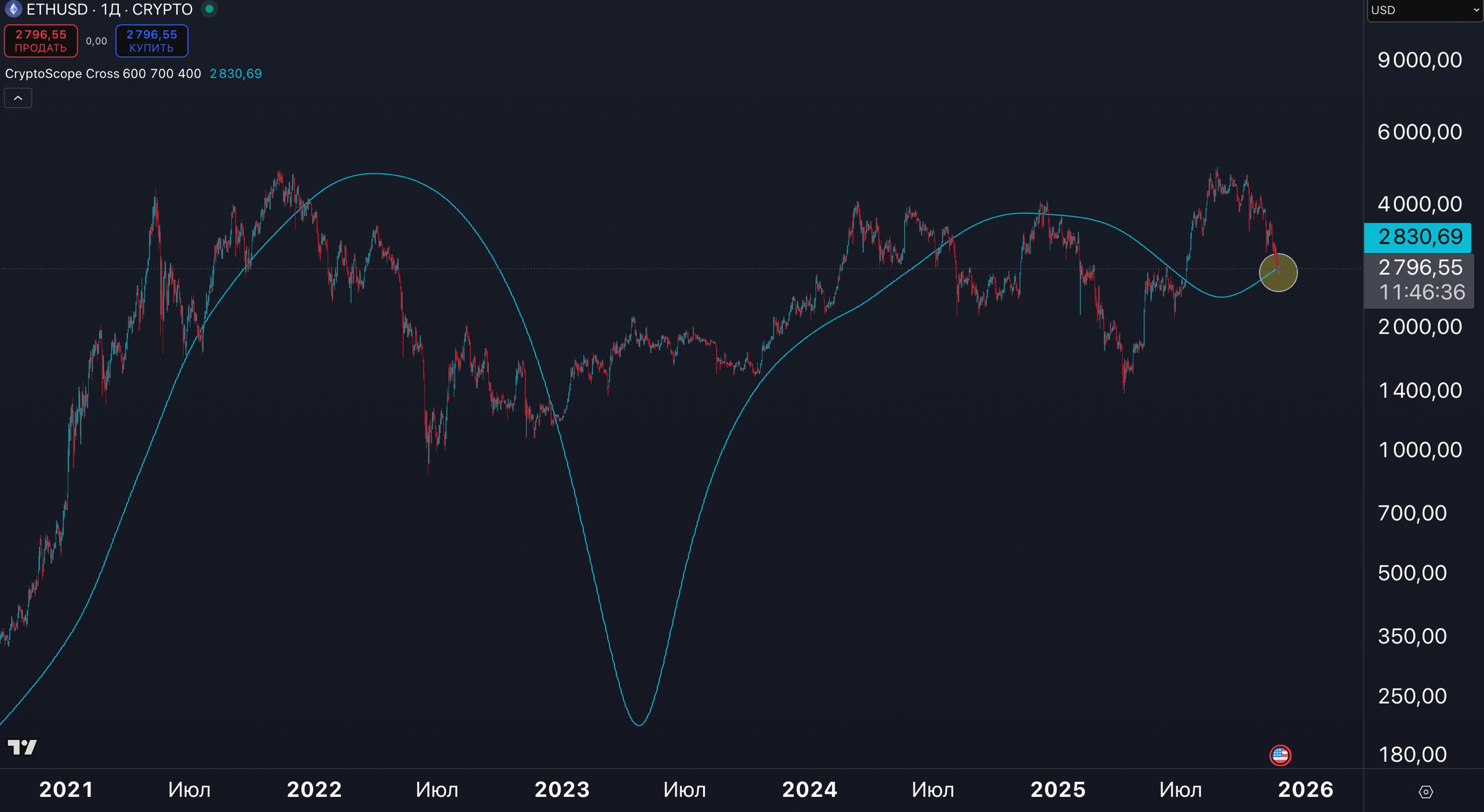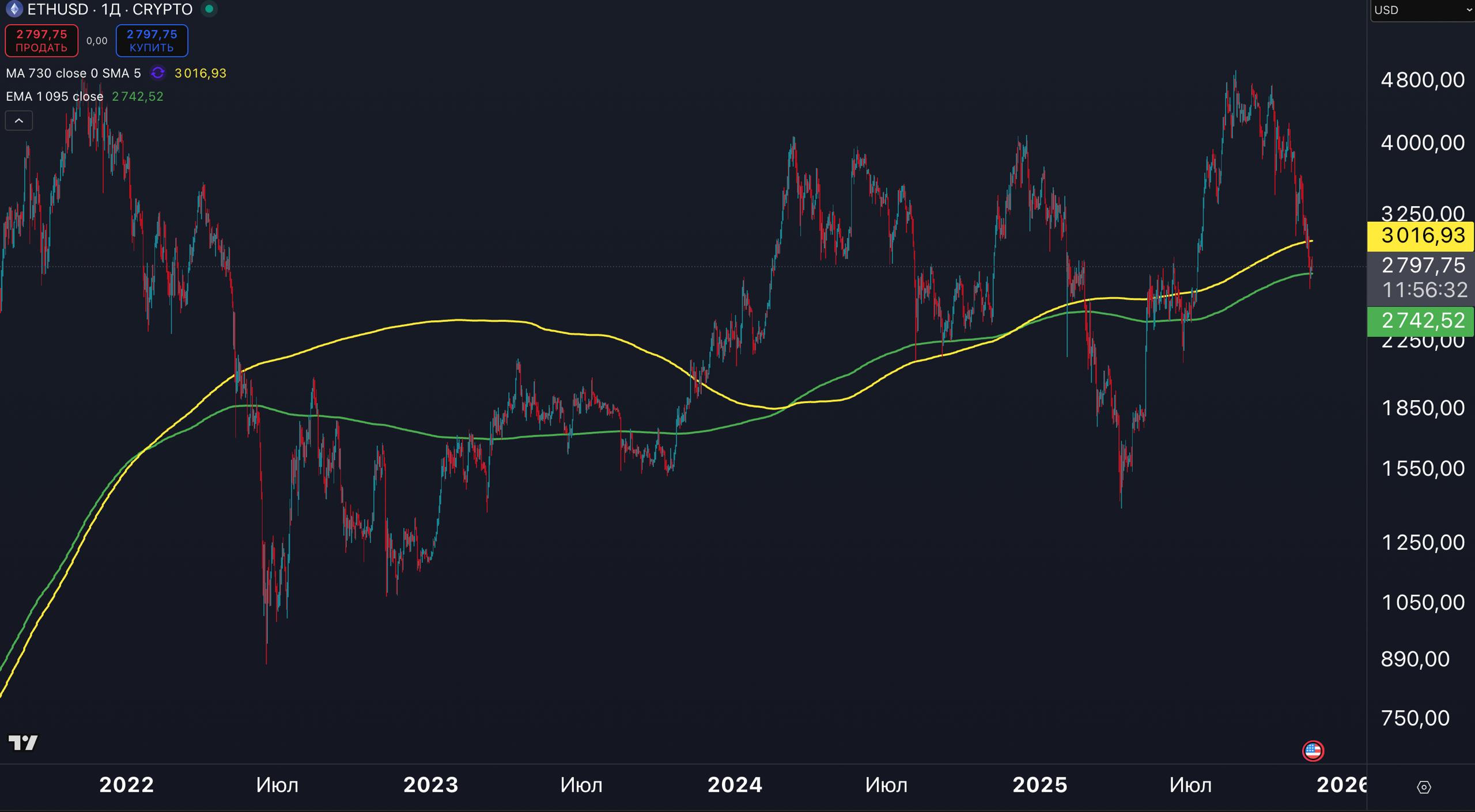 💭 С одной стороны, как и по BTC, здесь мы наблюдаем тесты многих поддержек. В тоже время, двухлетняя МА пробита. Как показывает история, закрепление ниже МА730 тремя неделями подряд, означает начало медвежьего тренда/среднесрочной коррекции. Поэтому, в ближайшие две недели ETH нужно подняться выше 3000$. Как по мне, вполне вероятно это и произойдёт.