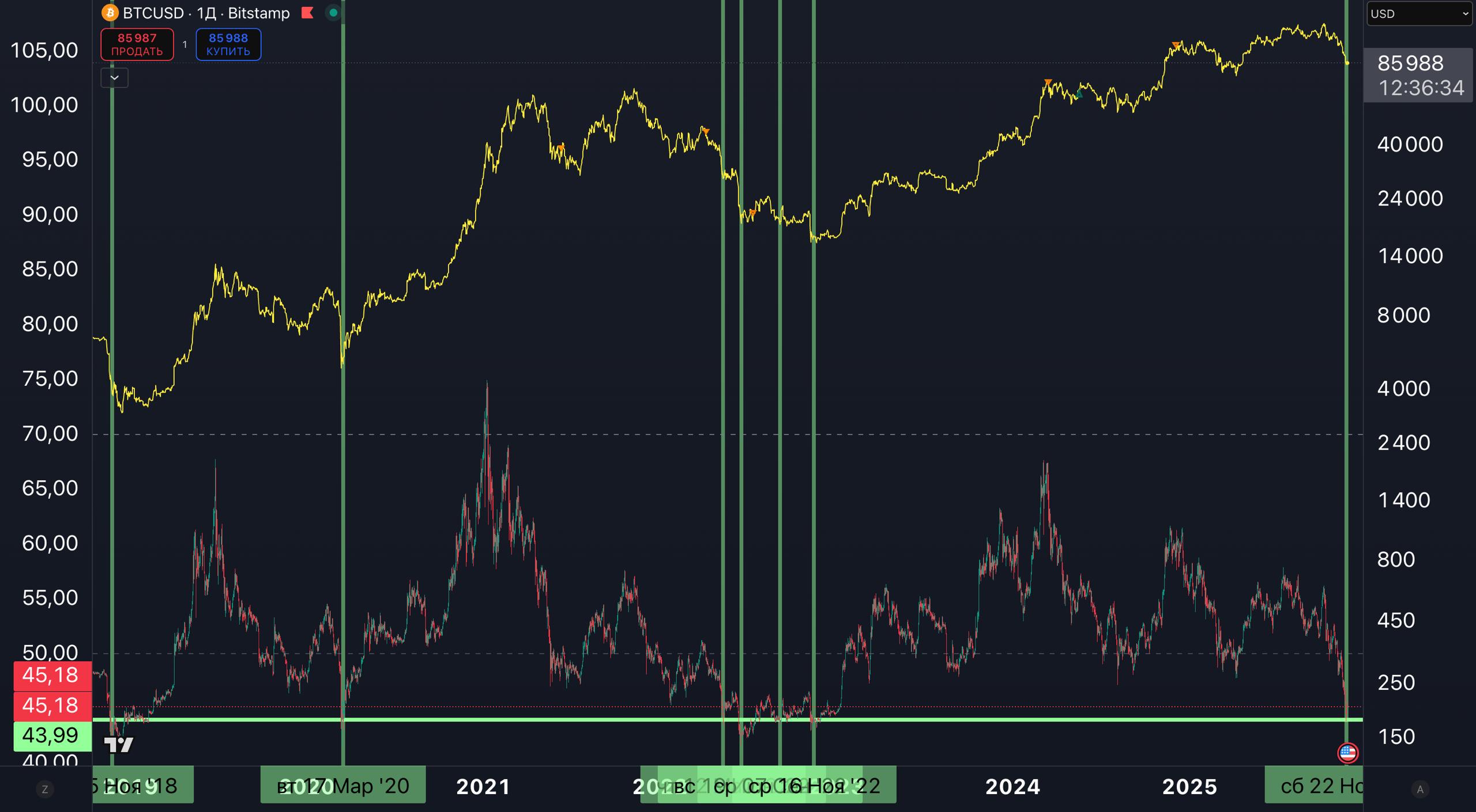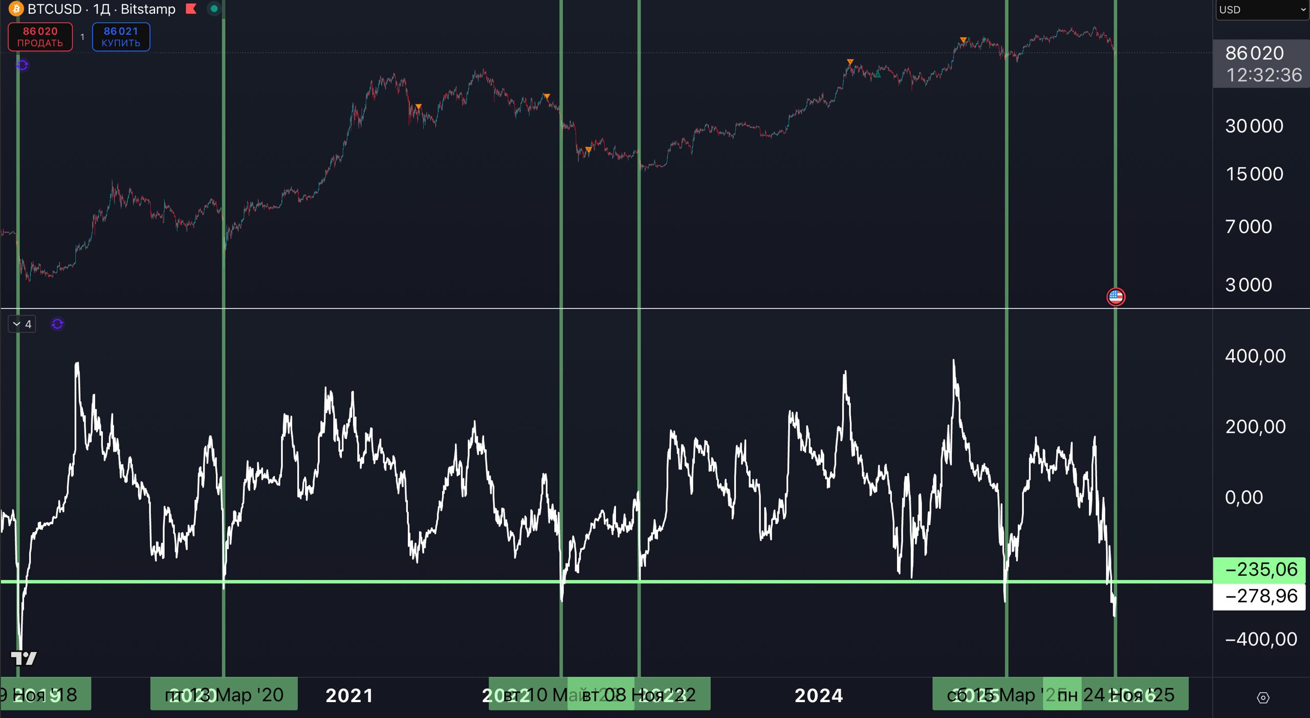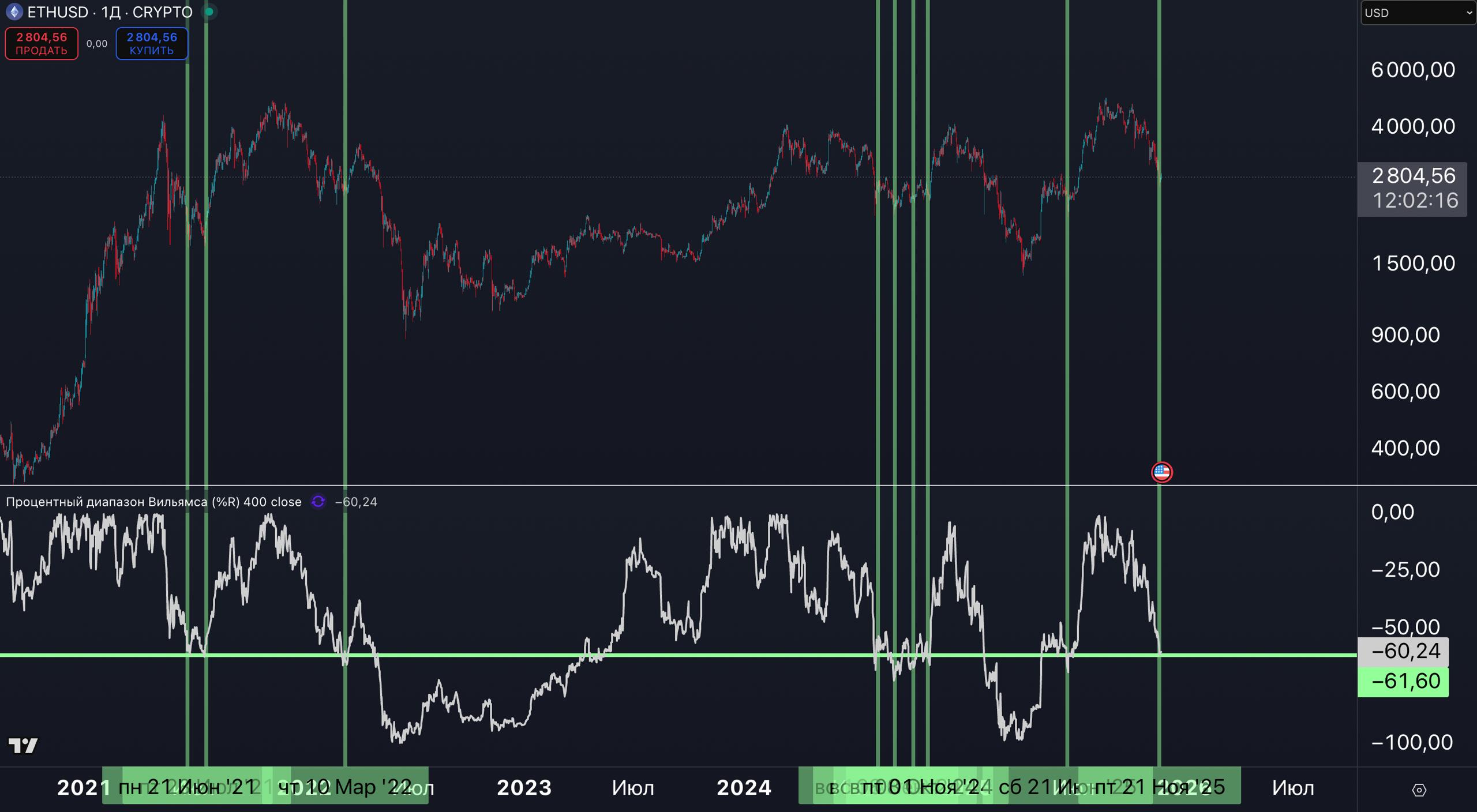 📌 % диапазон Вильямса[SMA400] = достигнут уровень среднесрочного дна (график №1)