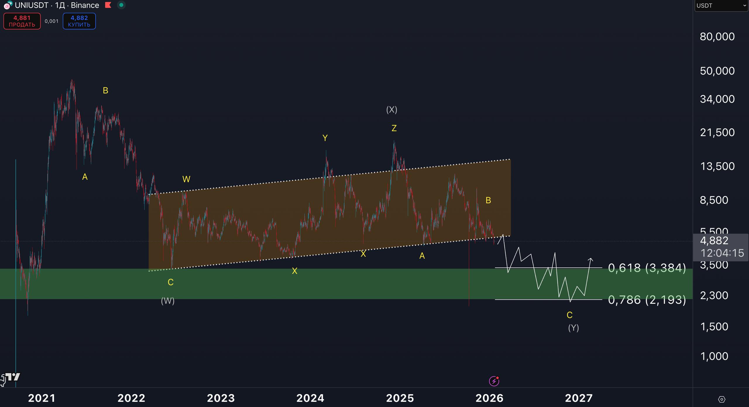 Пробой поддержки коррекционного «флага» плохой знак. Как и ранее говорили, в 2026 году, ожидаем снижения UNI ниже 3,5$, в блок 2,2-3,4$