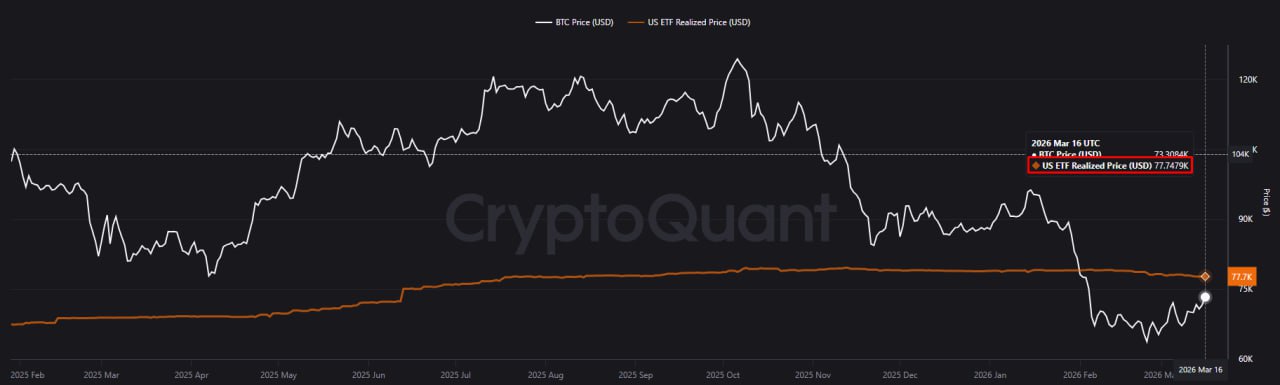 US ETF Realized Price находится на отметке 77 700к$. Фактически, пока цена находится ниже данного уровня, BTC формирует дно.