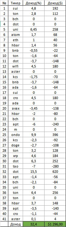 Если бы каждая сделка открывалась на 200$ с 20 плечом, доход составил бы 1296$.