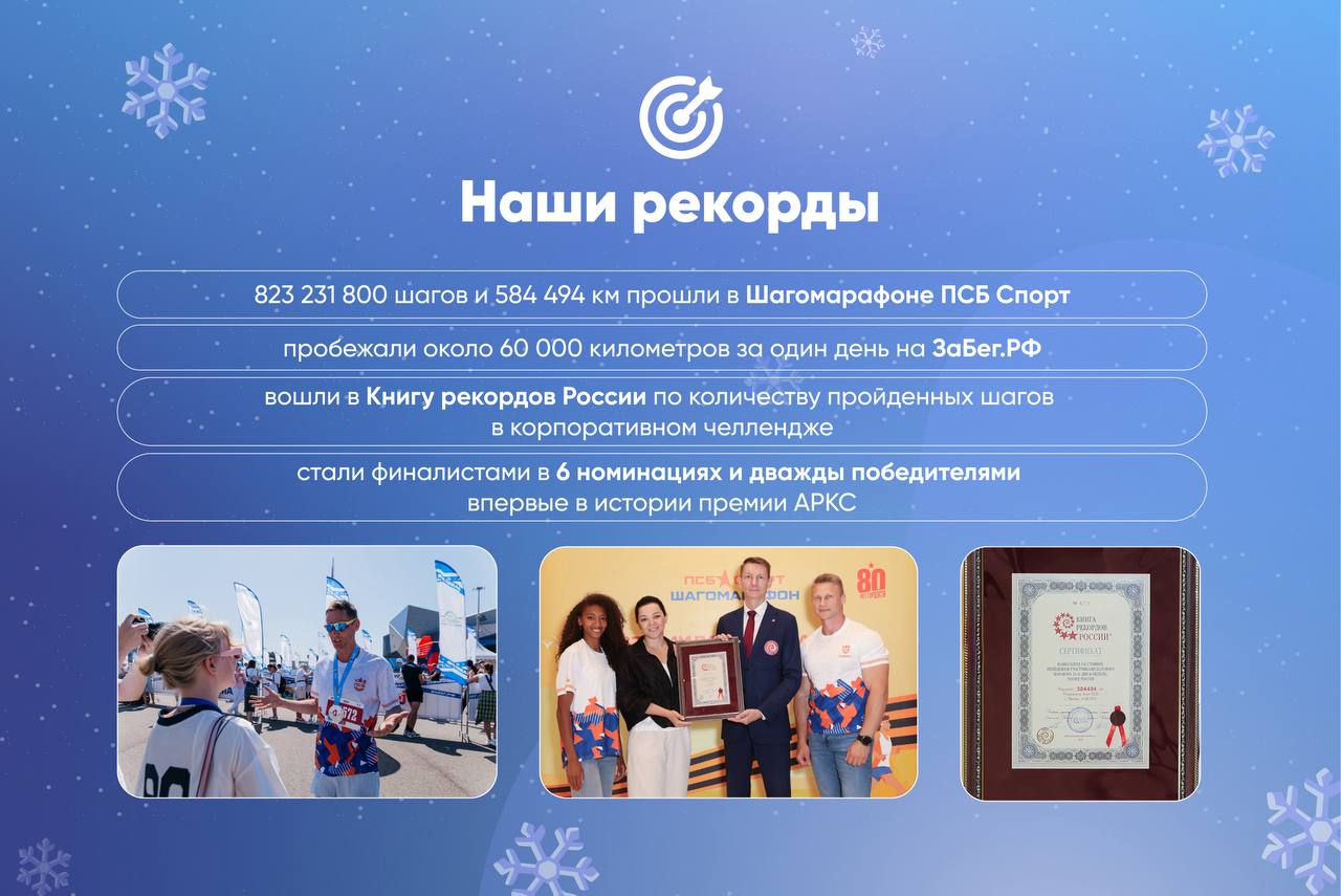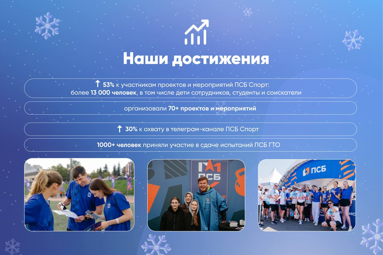 2025 получился годом настоящего командного прорыва. Вместе с вами мы снова доказали, что ПСБ Спорт — не просто дружное сообщество, а энергия, культура, ценности и реальные дела 🏦