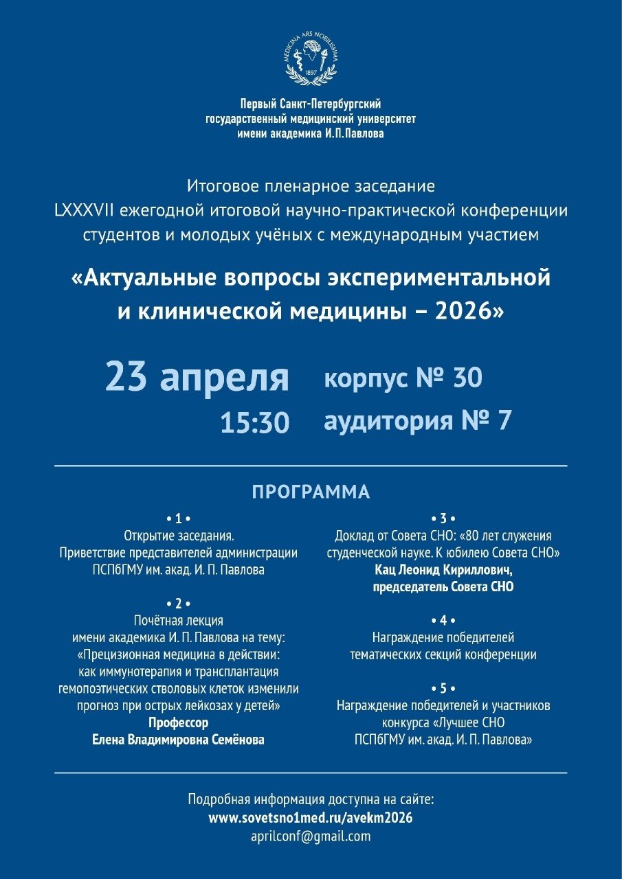⭐️ 15 апреля 2026 года команда студентов 2 курса лечебного факультета ПСПбГМУ им. акад. И.П. Павлова приняла участие в VIII Международной олимпиаде по истории медицины в рамках XIII Международного молодежного научного медицинского форума "Белые цветы", посвященного 250-летию К.Ф.Фукса и 100-й студенческой научно- практической конференции в Казанском ГМУ.