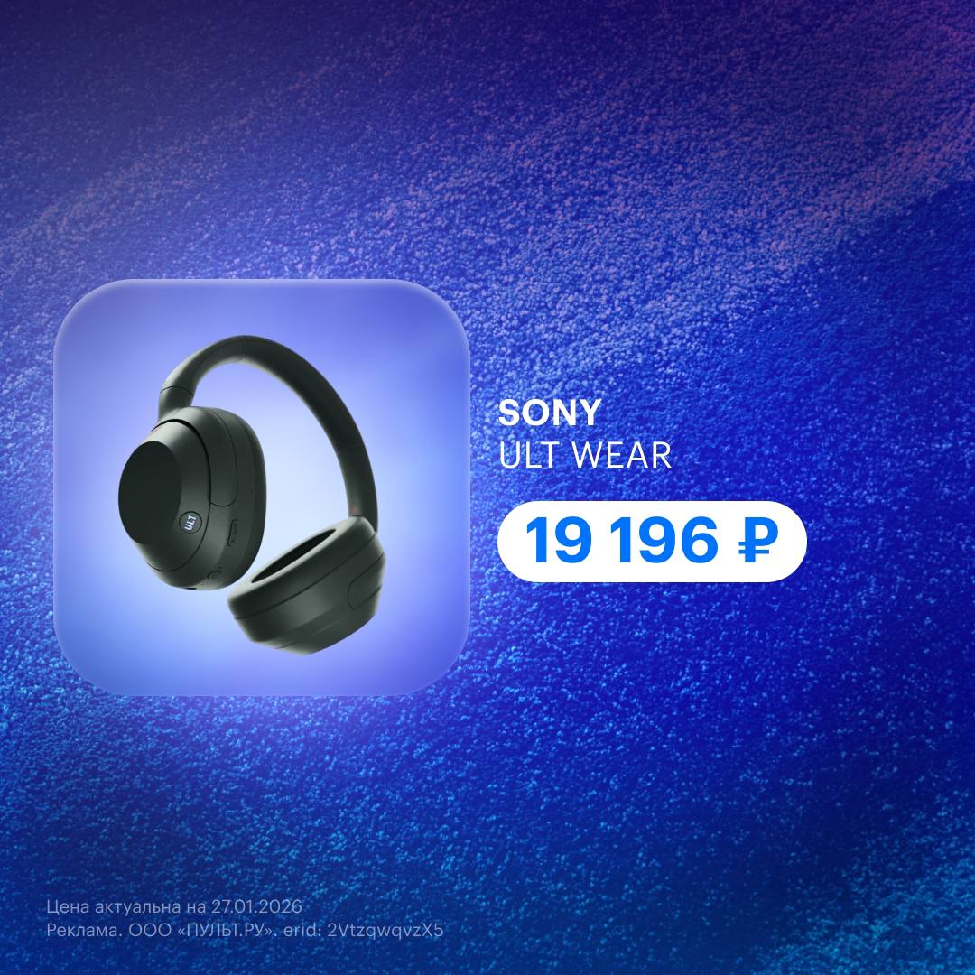 🔹 Sony ULT Wear — мощный бас, процессор V1, ANC и режим прозрачности. До 50 часов работы и удобное приложение для настройки.