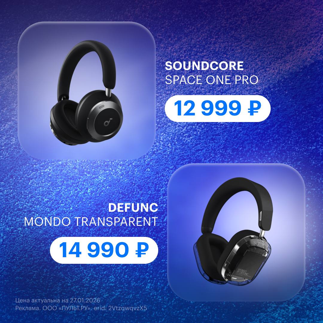 🔹 Soundcore Space One Pro — складная конструкция, адаптивное шумоподавление и быстрая зарядка. До 40 часов с ANC и до 60 без него. Удобный вариант для города и поездок.