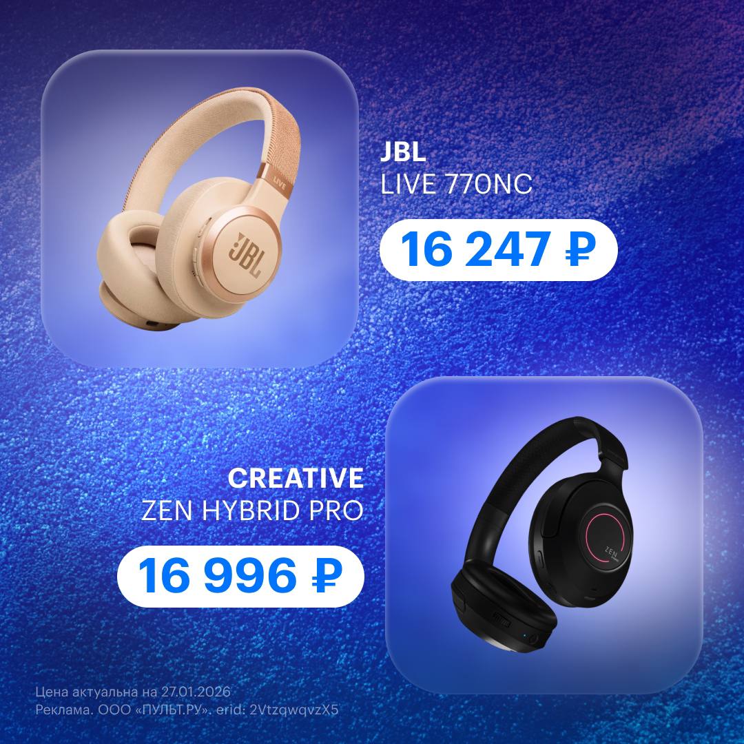 🔹 Creative Zen Hybrid Pro — до 100 часов автономности, технология Super X-Fi, гибридное шумоподавление и настраиваемая RGB-подсветка. Интересный вариант для игр и фильмов.