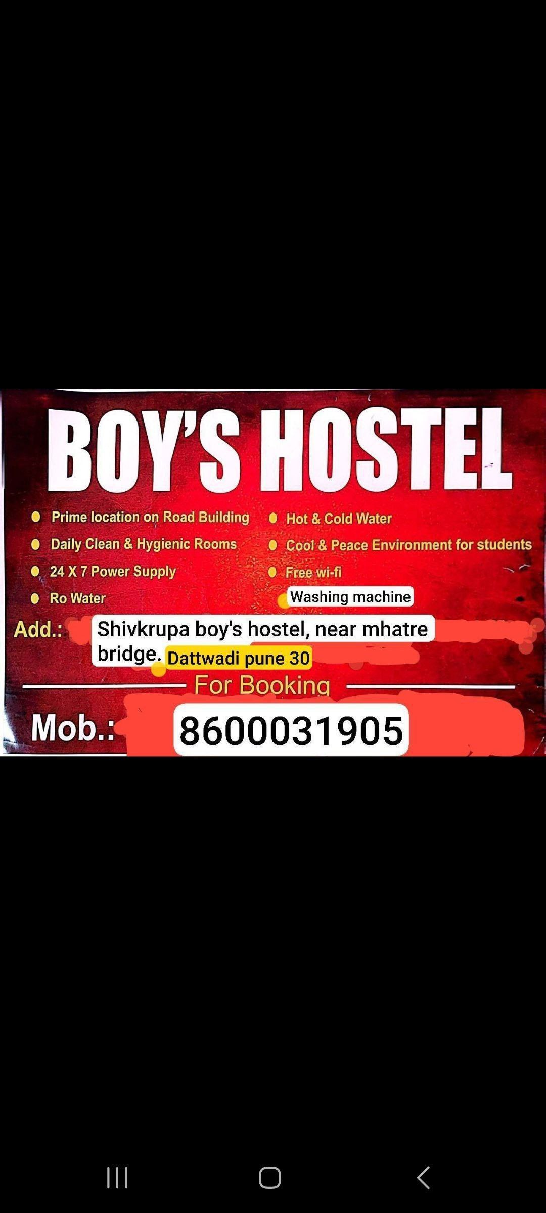 ⭕️ *ADDRESS:- SHIV KRUPA BOY'S HOSTEL, House Number 120 DATTAWADI*