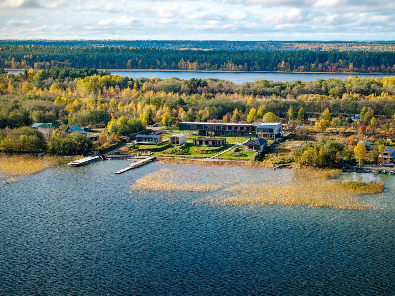 Здесь архитектура деликатно вписана в ландшафт: фасады из северного дерева и лемех отражают традиции Русского Севера.