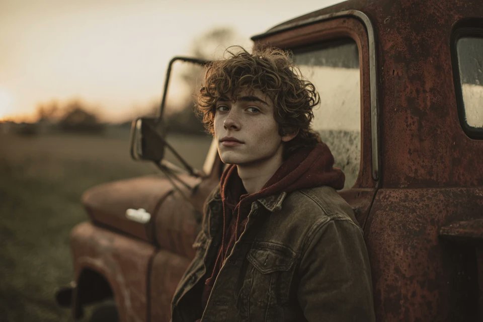 Cinematic portrait of a [ОБЪЕКТ], [ОПИШИТЕ ФОН], soft ambient lighting, warm earthy tones, nostalgic 1970s wardrobe, reflective mood, gentle film grain texture, shallow depth of field, vintage editorial photography style.