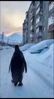 Одинокий пингвин, ушедший от стаи в горы, — теперь главный мем Рунета.