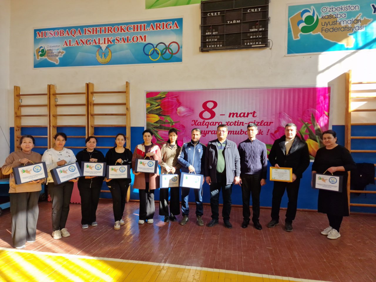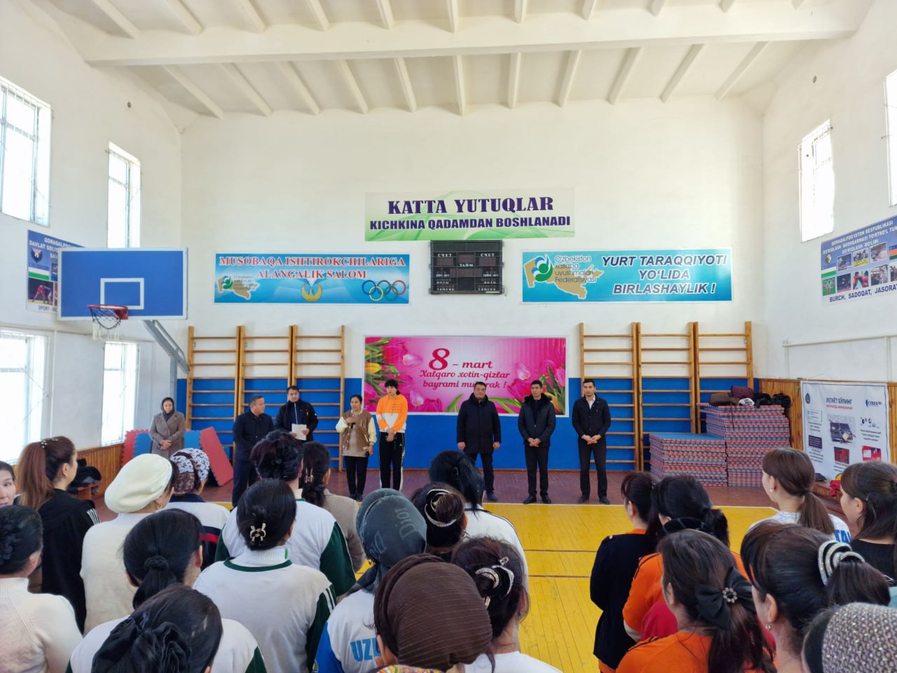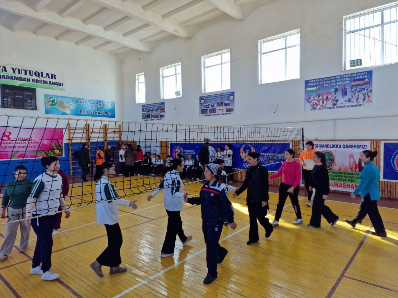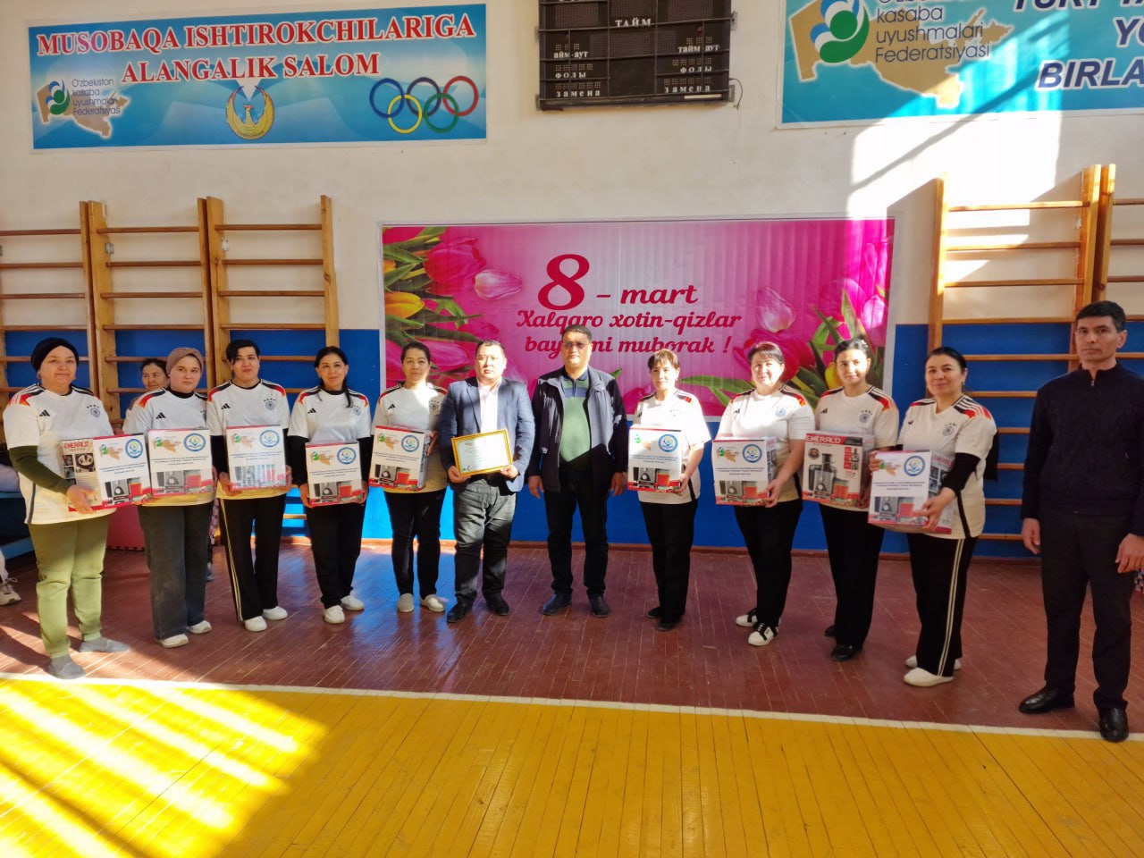 8-mart Xalıqaralıq hayal-qızlar kúnin keńnen belgilew, bilimlendiriw hám ilim tarawında nátiyjeli jumıs alıp barıp atırǵan hám shańaraqlardıń bekkemligin támiyinlewge óz úlesin qosıp atırǵan kásiplik awqamınıń belsendi hayal-qızların xoshametlew, úlgili kásiplik sheberligi menen hámmege órnek bolǵan miynet veteranların húrmetlew maqsetinde Ózbekstan bilimlendiriw hám ilim xızmetkerleri kásiplik awqamınıń Tórtkúl rayonlıq bólimi tárepinen "Sport - gózzallıq hám salamatlıq dáregi" súreni astında sporttıń voleybol, shaxmat, shashka hám stol tennisi túrleri boyınsha hayal oqıtıwshı hám jumısshı xızmetkerler arasında jarıslarǵa start berildi.