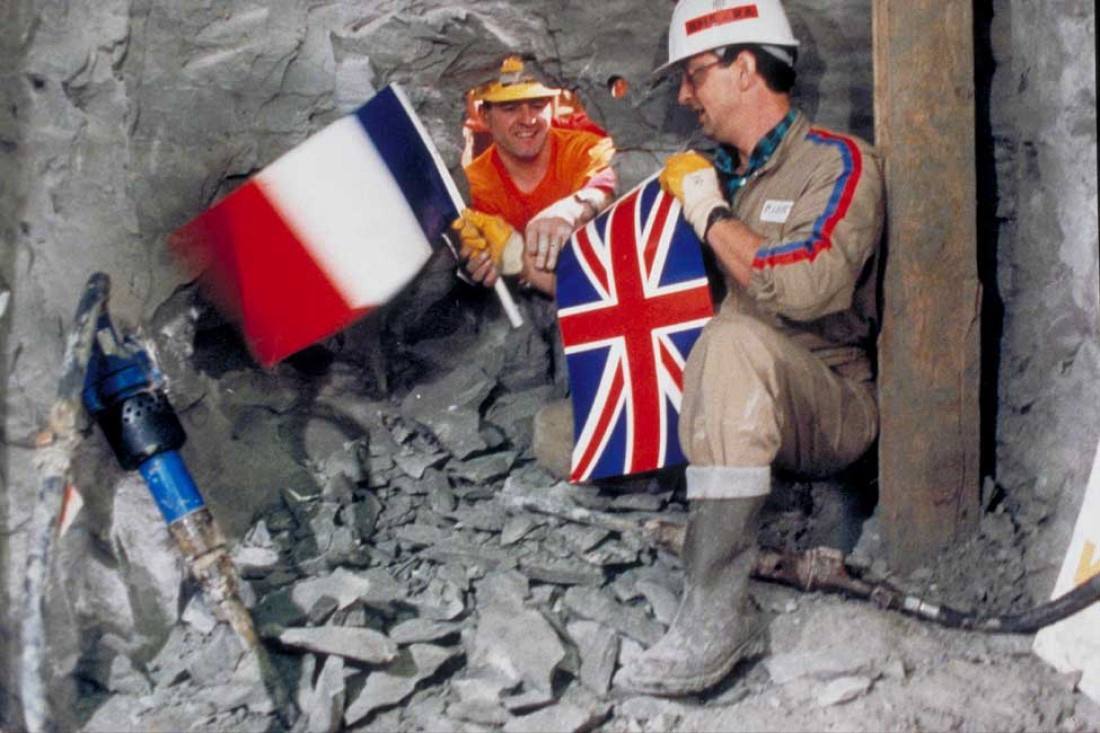 Это фото сделано в 1990 году. В каком тоннеле? Ла-Манш На фото бригады проходчиков с двух сторон.