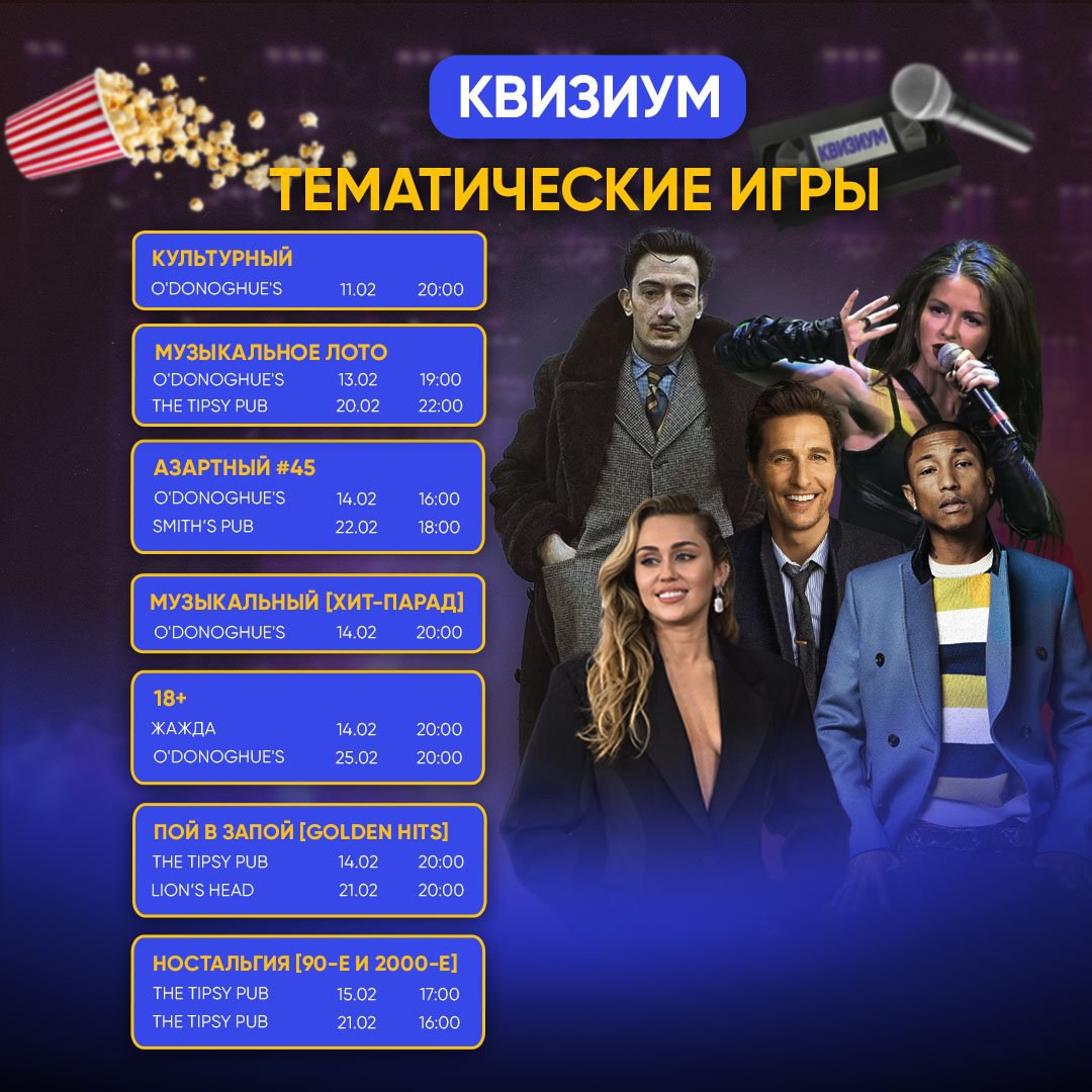 Уютным домоседам подготовили онлайн Квизиум: встречаемся 15 и 23 февраля классике. Вспоминаем всё на свете, не выходя из сети.