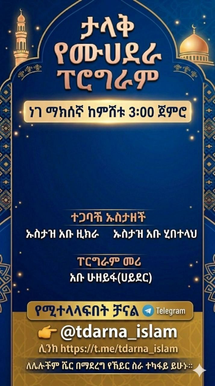 ​ነገ ማክሰኞ ልዩ የሙሀደራ ፕሮግራም ተዘጋጅቶላችኋል። ሁላችሁም ተጋብዛችኋል!