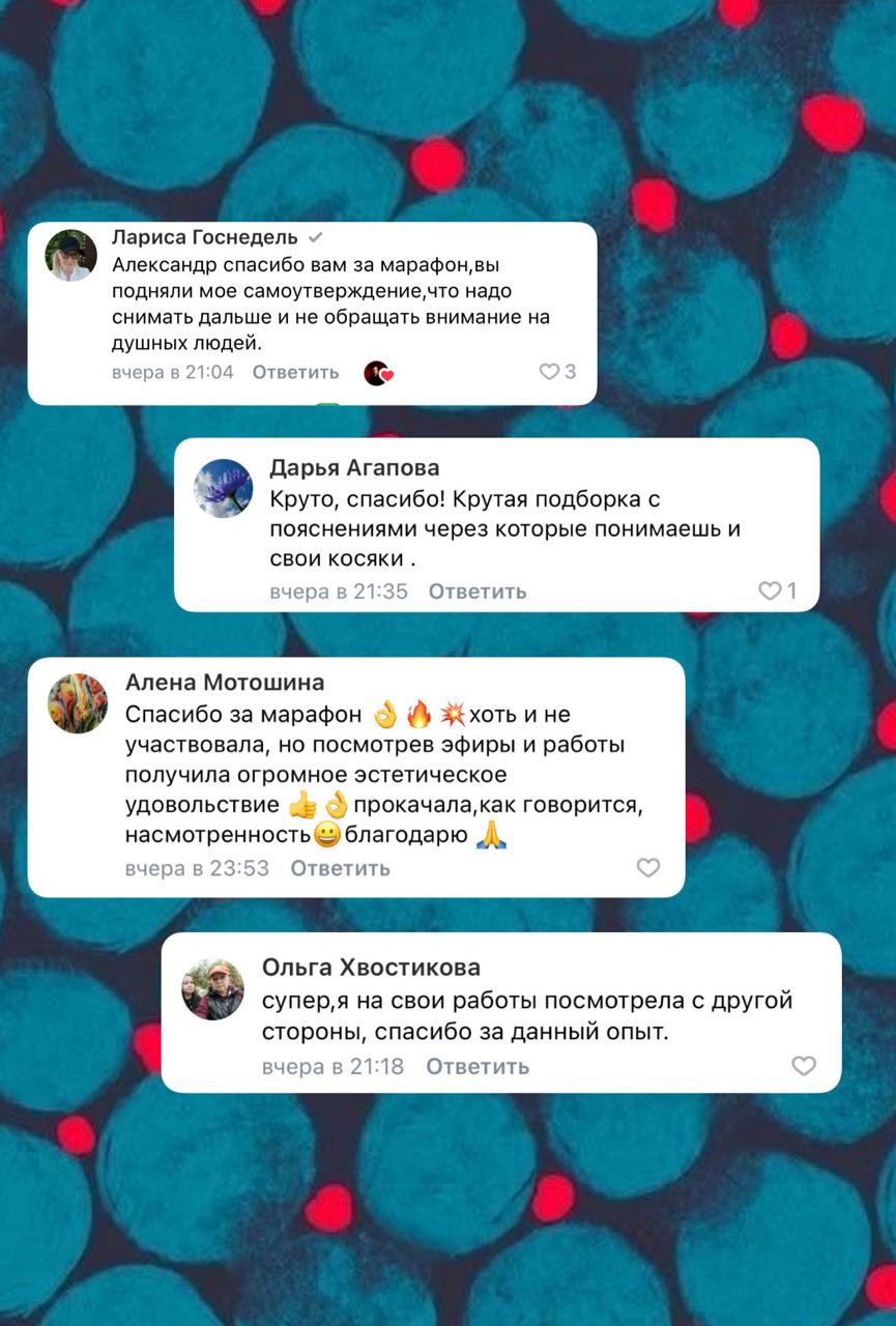 И самое главное — почему именно этот курс? Мы не производим, как все, одинаковые копии мастера с одинаковыми фотографиями! А даем вам инструменты раскрыть себя, найти свой голос и сделать свои работы выразительными и эстетичными. Учим реализовывать свои идеи и ощущения в кадрах. Разные ученики снимают разное и по-разному, но всегда интереснее, лучше и заметнее, чем было раньше.