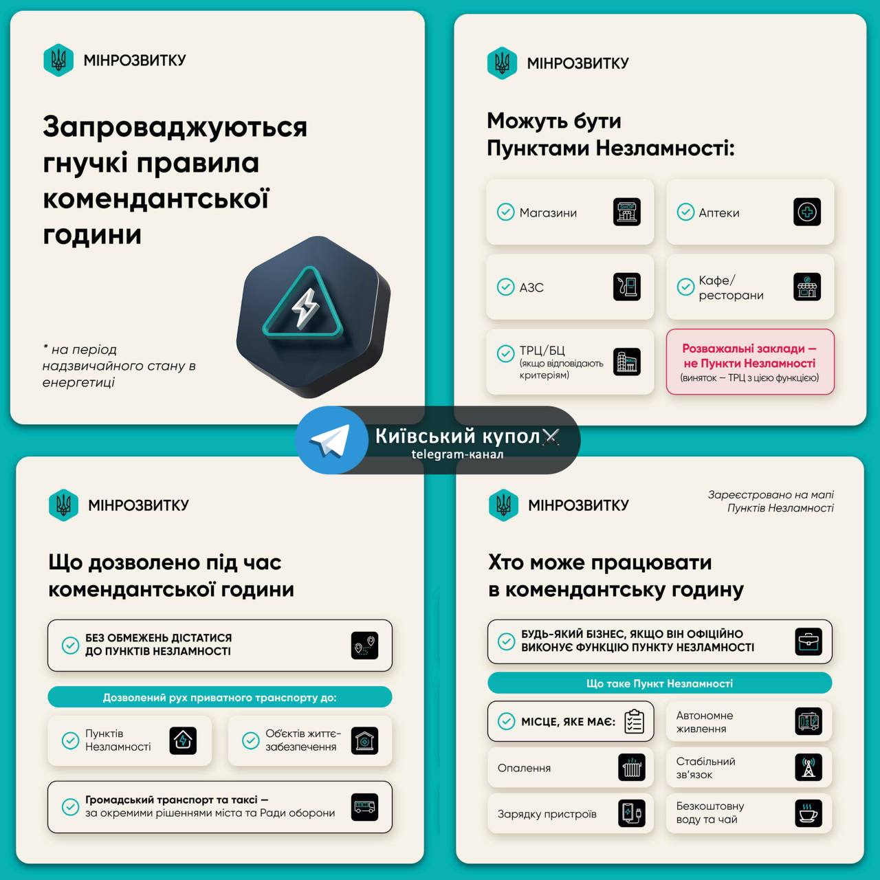 ⚡️Бізнес може працювати вночі як Пункти Незламності: Кабмін роз’яснив правила комендантської години під час надзвичайної ситуації в енергетиці