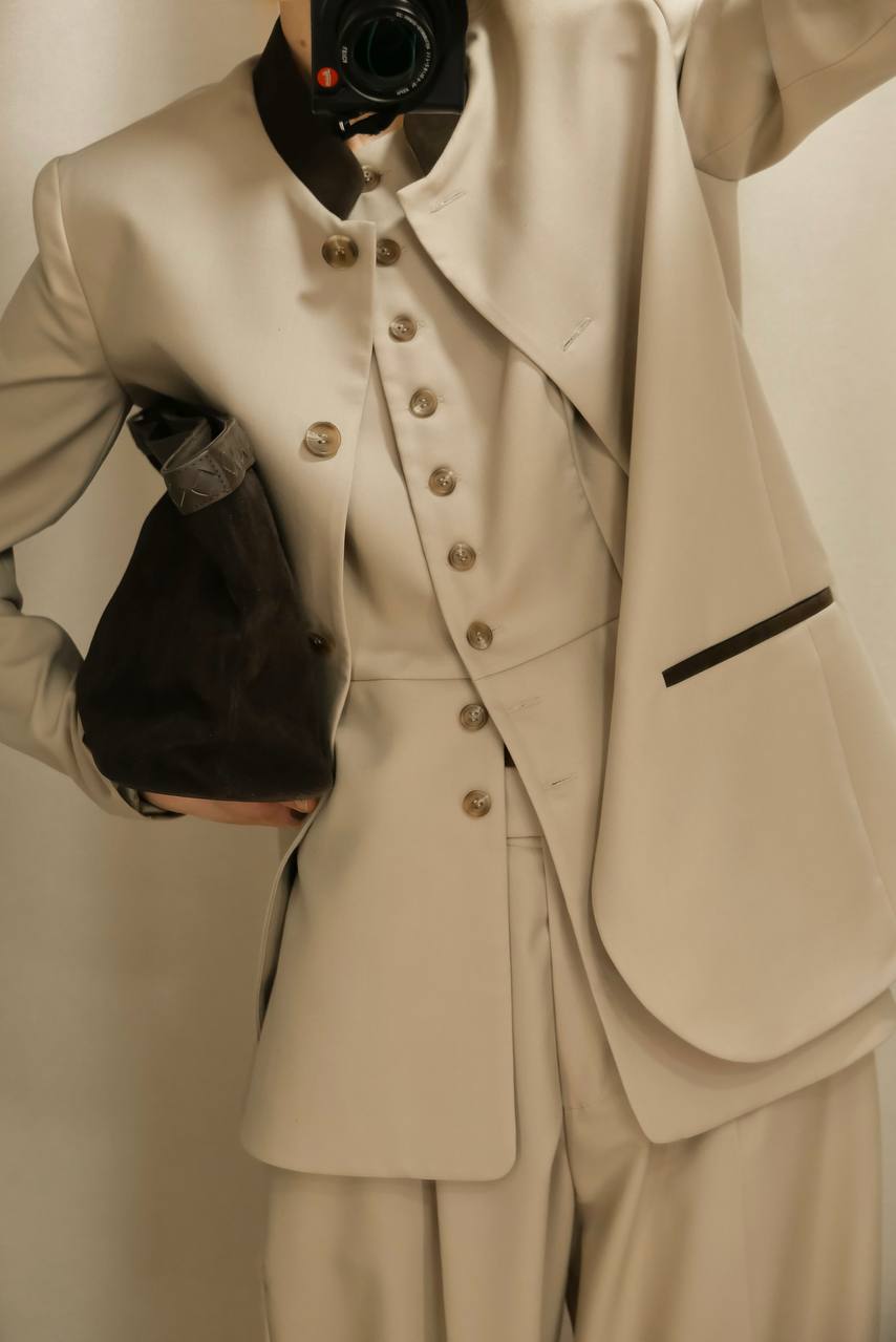5, 7 снимки: кардиган, брюки Wisteria + жакет Marion + ботинки Roni