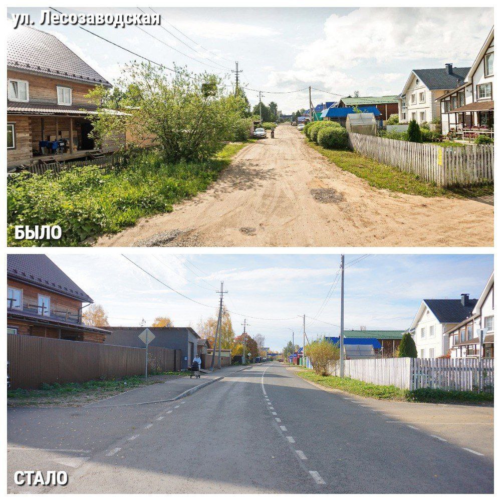 - Ул. Лесозаводская (от д. 1 до ул. Корткеросской, от ул. Школьной до Почтового проезда) - 534 метра. А также участок ул. Тентюковской.