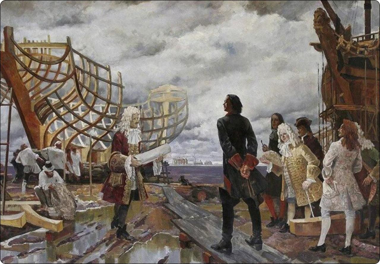 Фанфакт: страсть к судостроению была у императора с самой юности. Однажды, гуляя по амбарам в Измайлово, он увидел английскую лодку на несколько пар вёсел, которая могла ходить под парусом против ветра. Петра очень заинтересовал принцип работы этой лодки, он приказал ее отреставрировать и научить его ходить под парусом против ветра. Позже эта самая лодка стала прототипом первого российского флота
