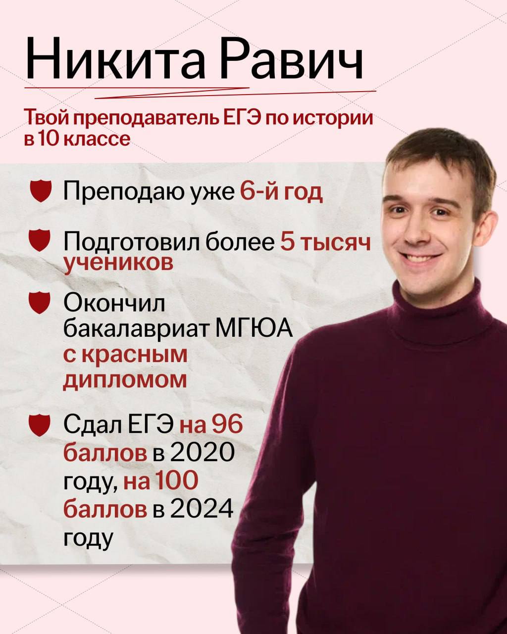Меня зовут Никита Равич, и я готовлю 10-классников к ЕГЭ по истории в Умскул!