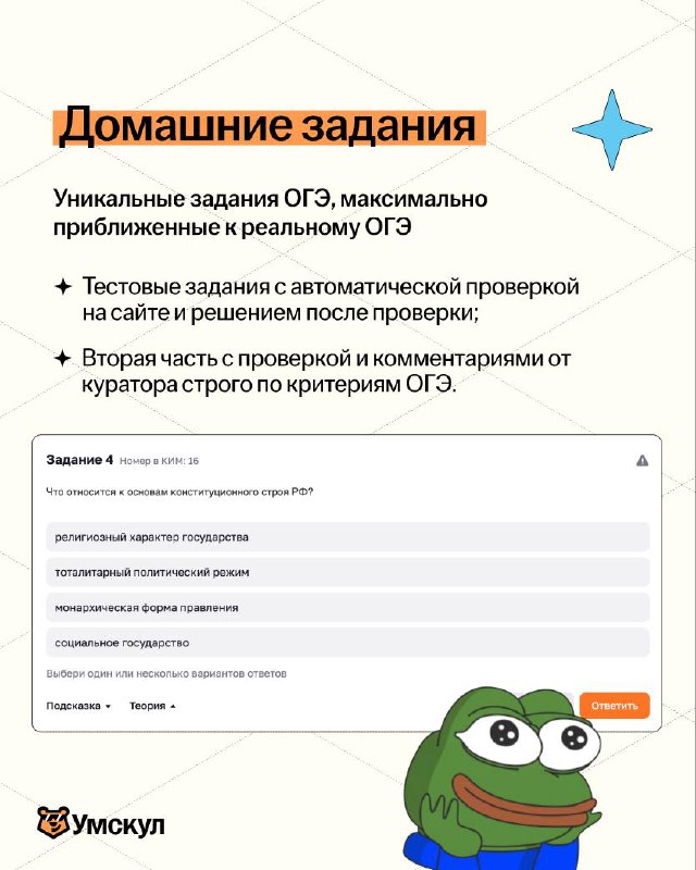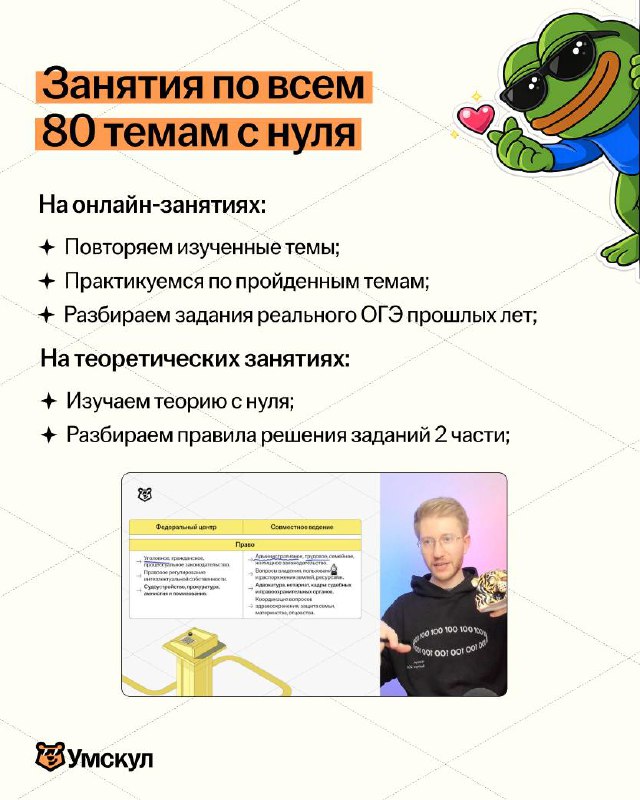 Ещё есть доп способы оплаты: в рассрочку или через Яндекс Сплит / материнским капиталом (пссс, цены станут выше, не прозевайте подготовку, это последний полноценный курс до ОГЭ) 😈